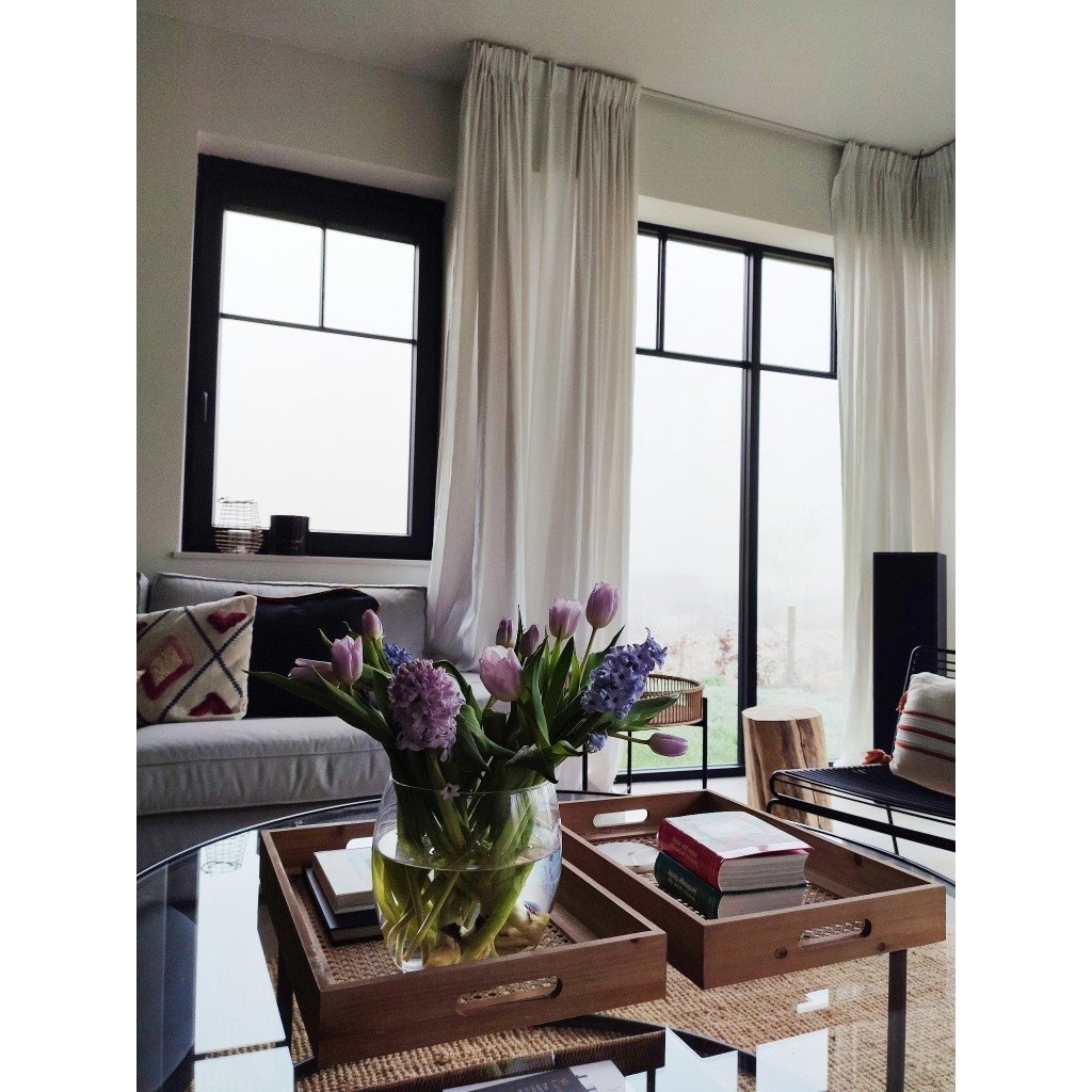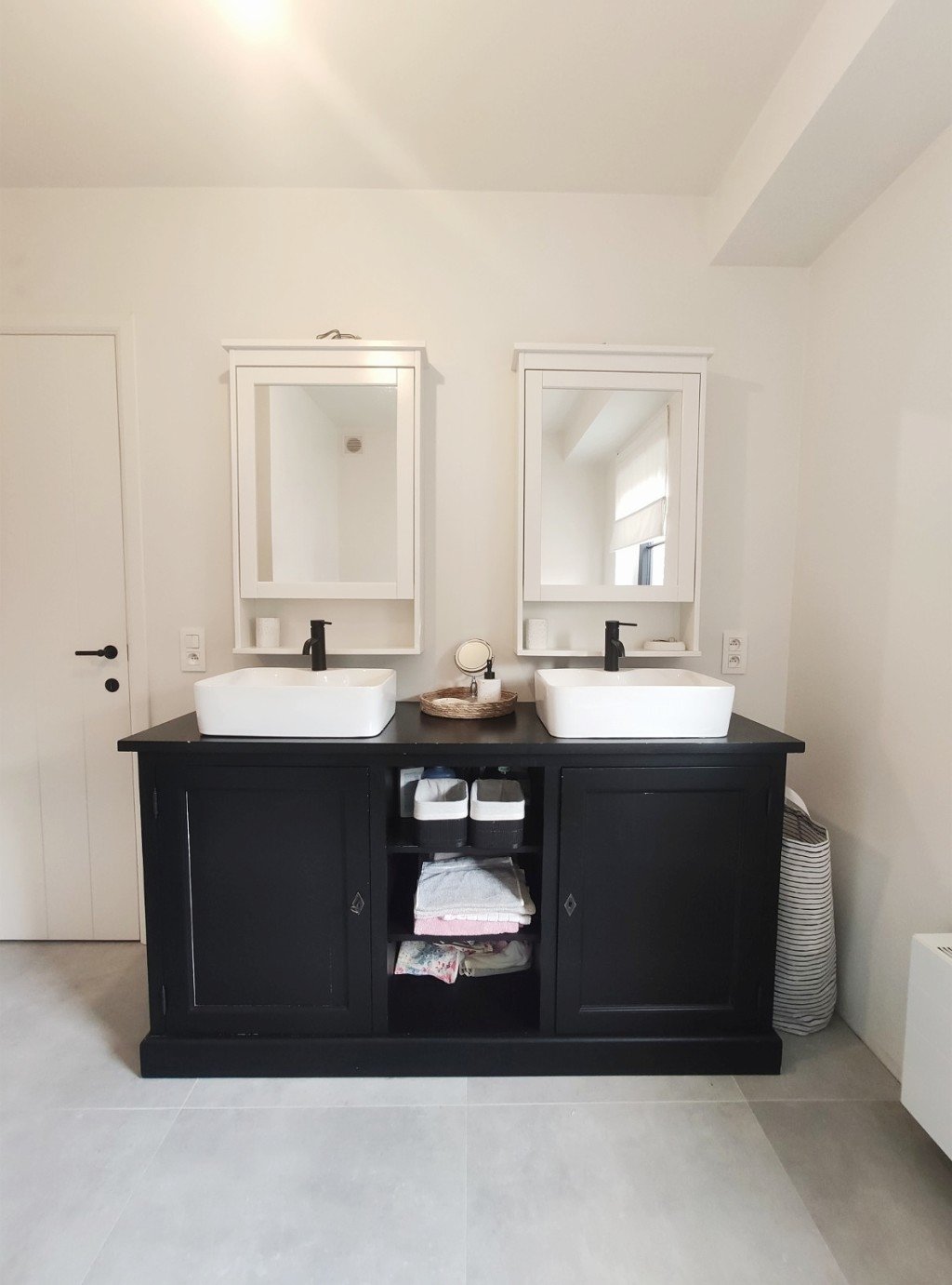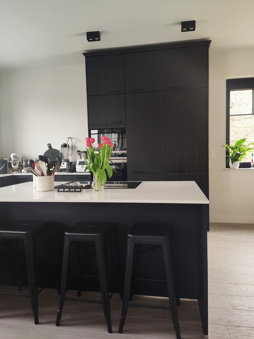 Maison nouvelle avec un mélange de charme à l'ancienne et de modernité. Plafonds hauts. Châssis noirs type atelier, matériaux et décoration de goût.