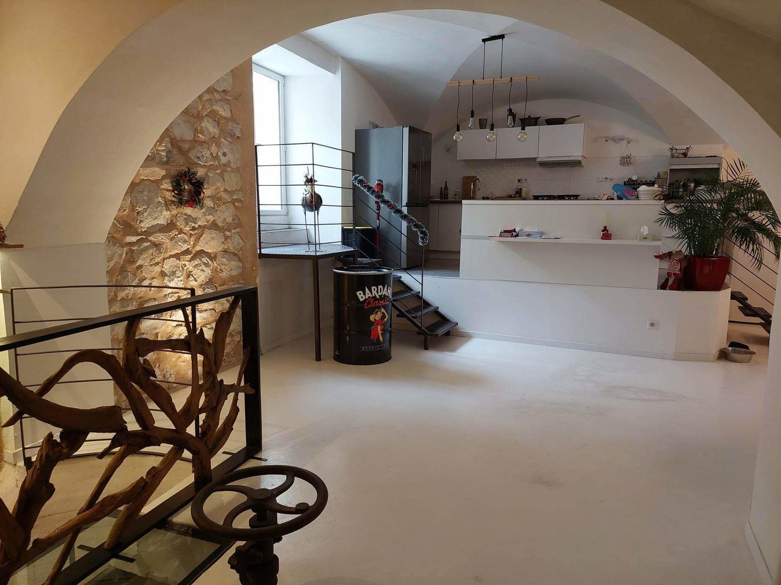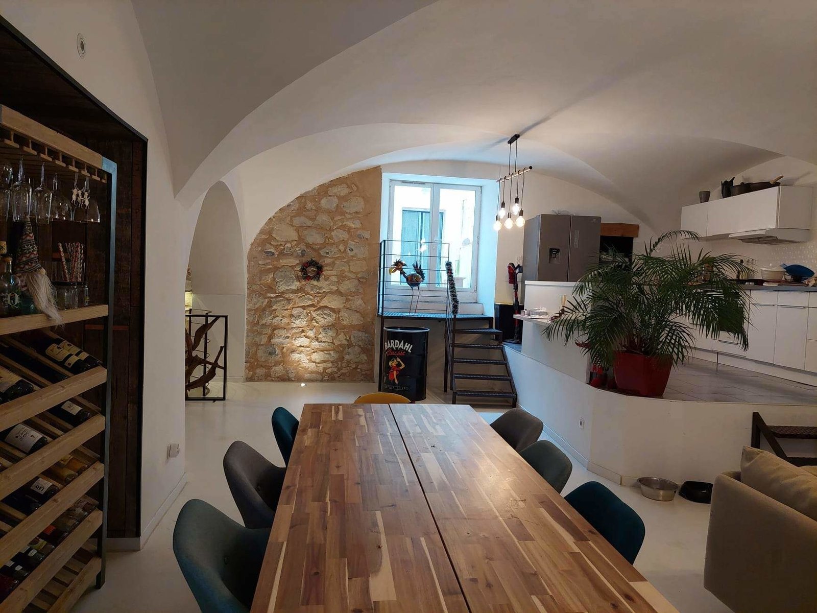 Maison de 230m2, entièrement voûtée (pièce de vie + chambres). Mur en pierres apparentes.