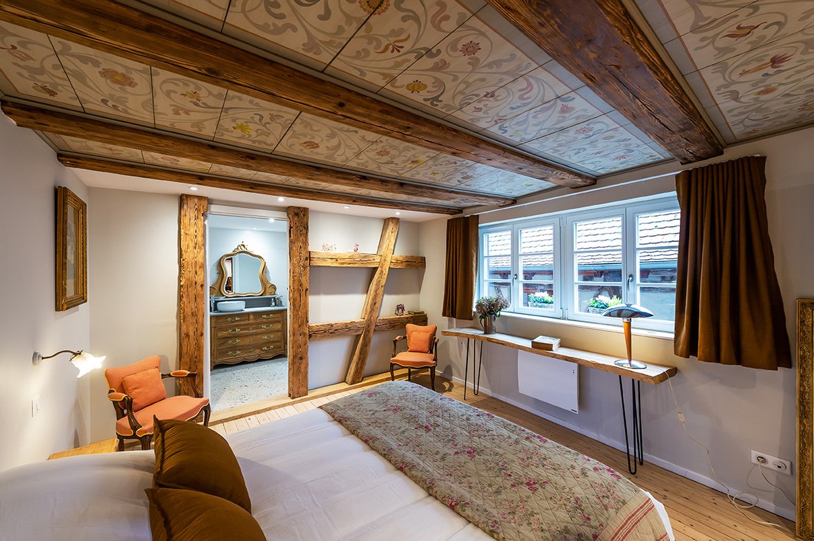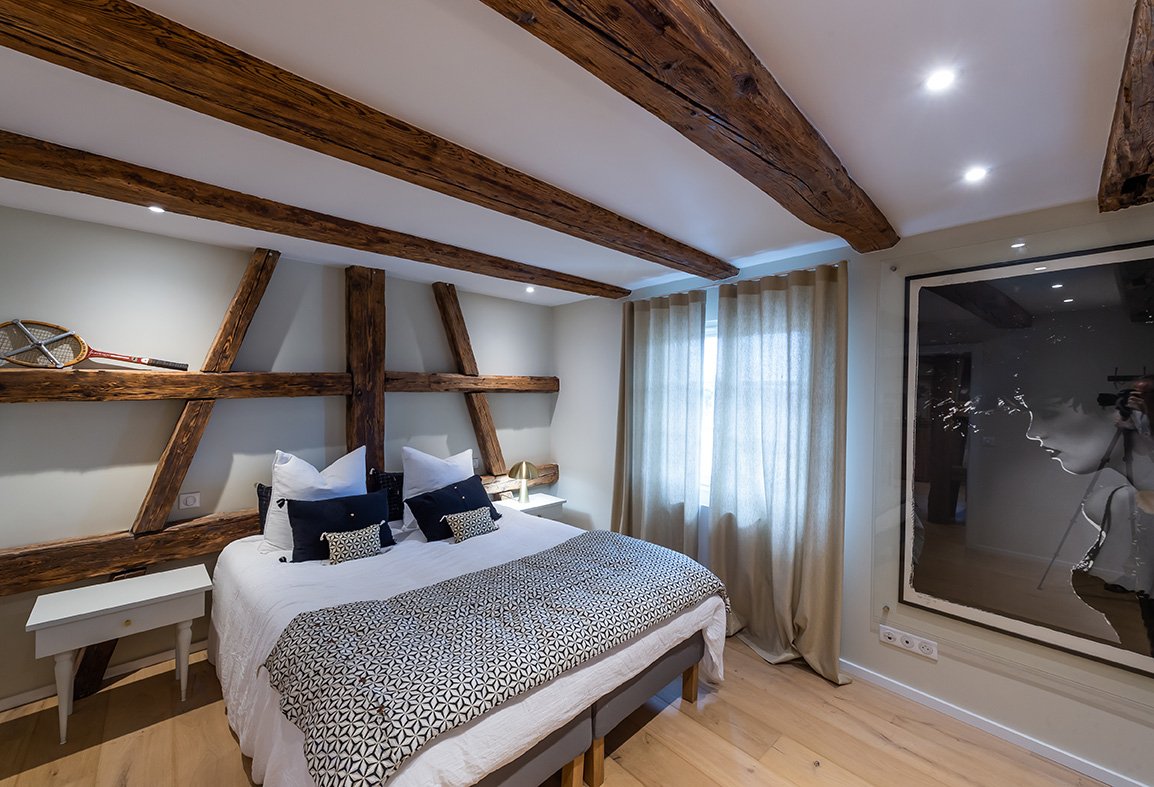 - 2ème étage : 2 chambres avec chacune sa salle de bain et toilettes, et un salon