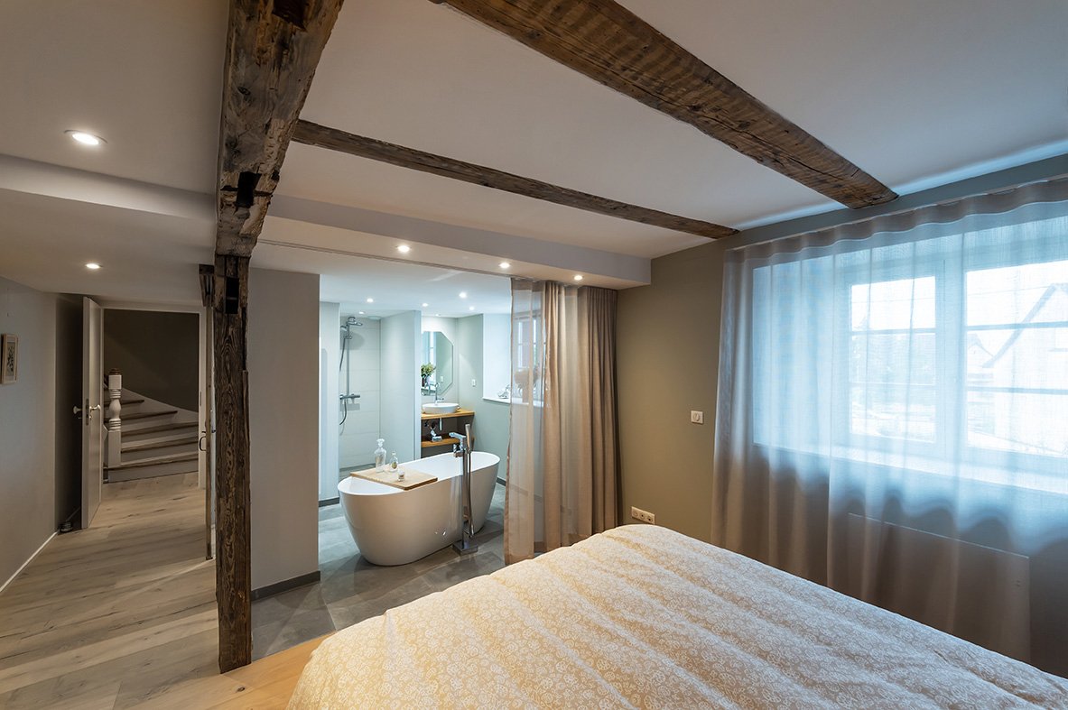 - 1er étage : 2 chambres avec chacune sa salle de bain et toilettes, et une lingerie