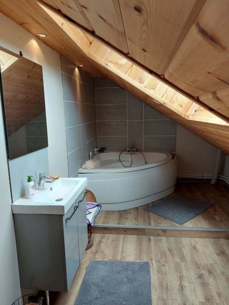 Au RDC : 1 chambre, une grande pièce cathédrale ouverte avec cuisine, salle à manger et salon