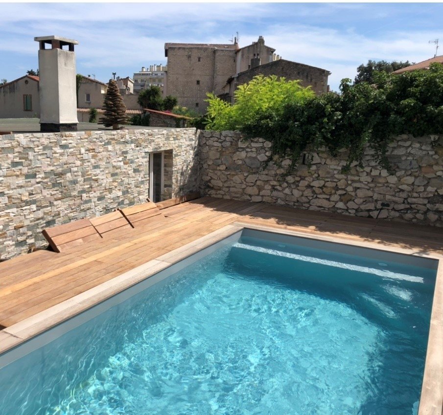 - Jardin en restanque + piscine au sel (7/3) 150m2