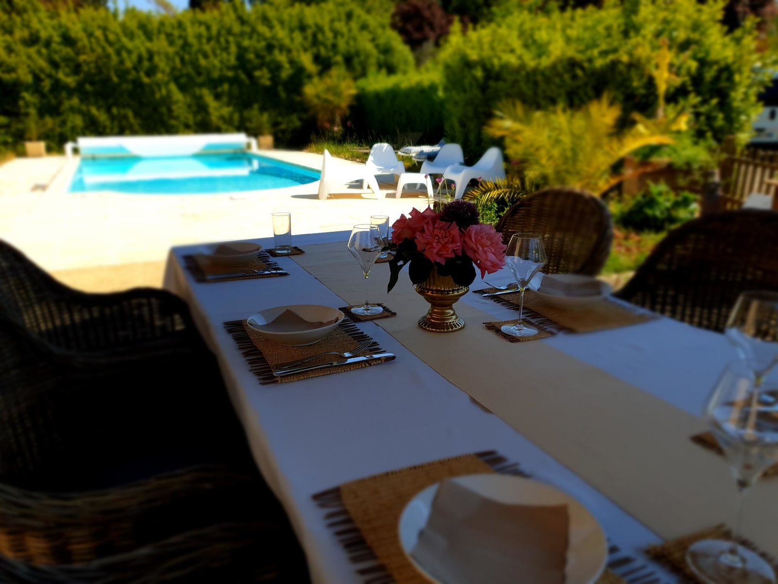 Piscine forme romaine de 10 m le long et un pool house de 10 m2.