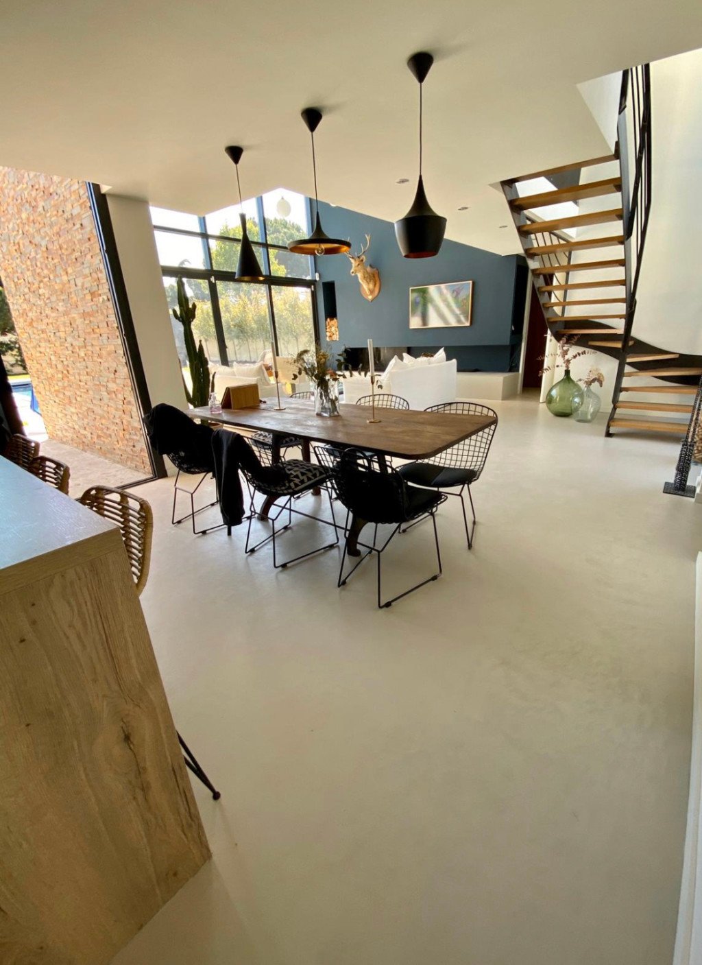 - séjour avec de grands volumes, très grandes baies vitrées et grande hauteur sous plafond