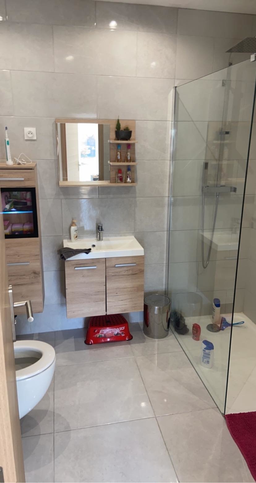 - une autre salle de douche avec toilette suspendue et douche à l’italienne.