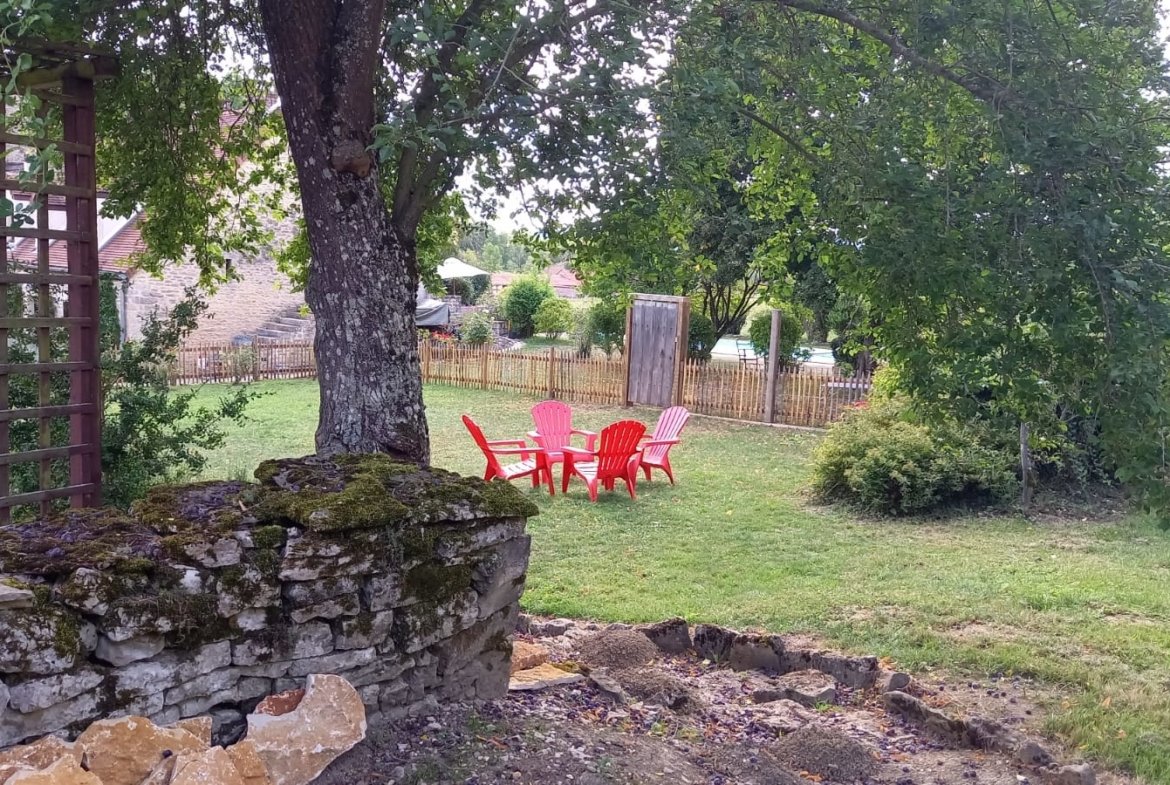 jardin devant avec séparation en ganivelles et un verger sur le coté
