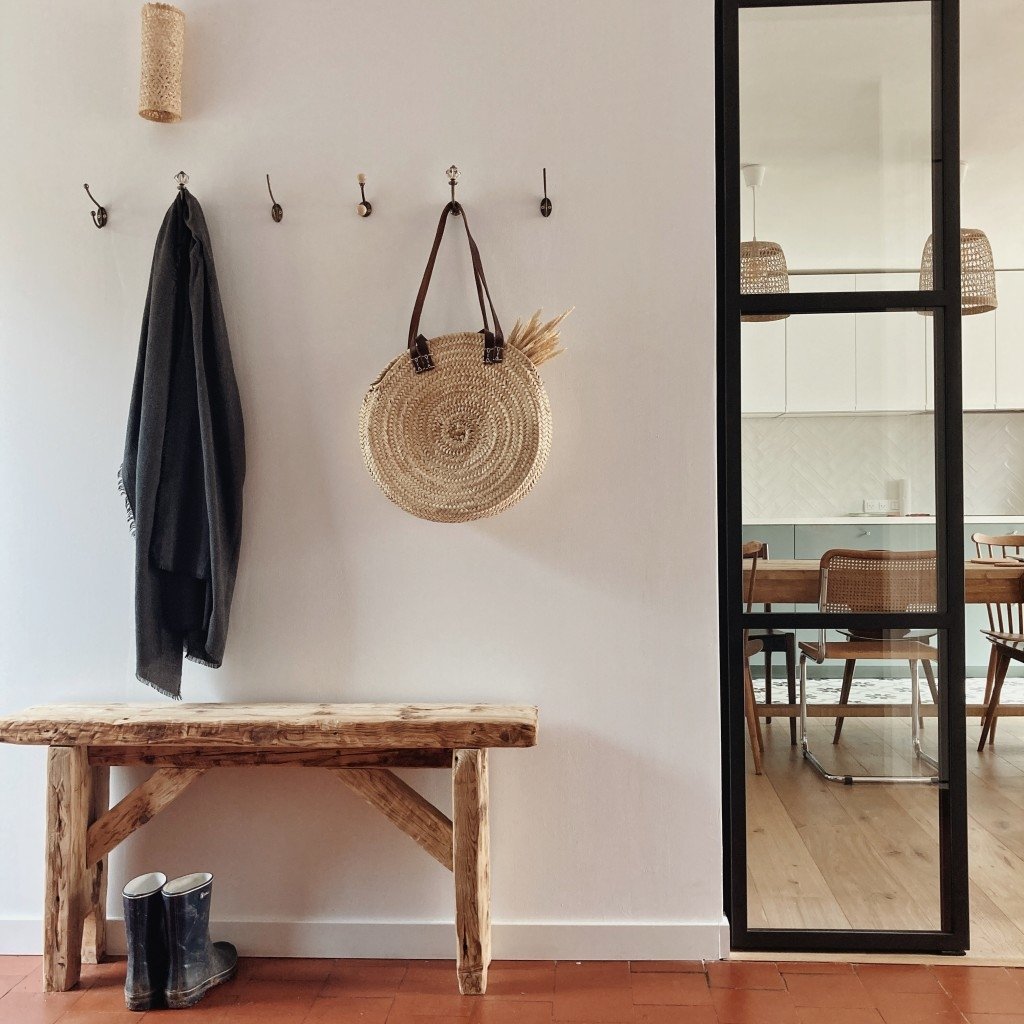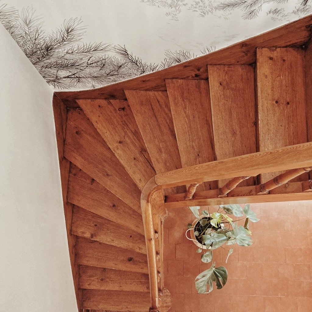 - d’une grande entrée avec tomettes anciennes d’origine, pierres apparentes sur l’un des murs, et d’une verrière vitrée coulissante faite sur mesure attenante à la cuisine. Au fond, l’escalier en bois d’origine est toujours là.