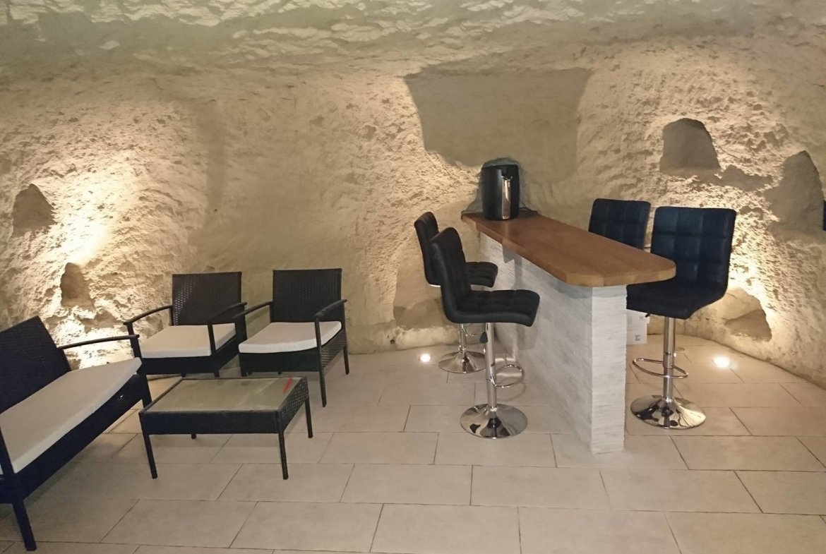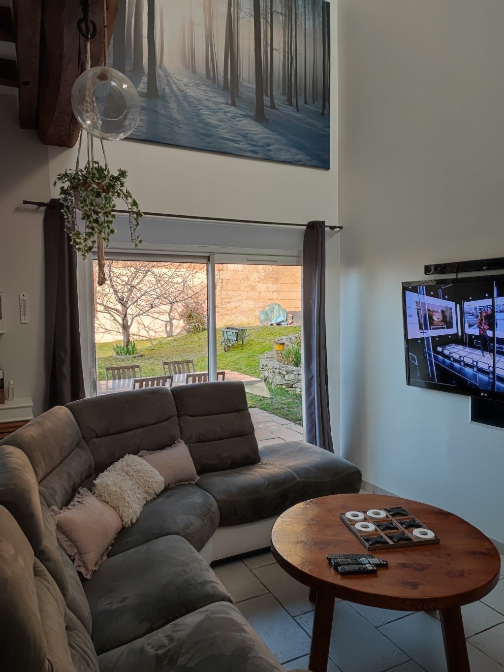 - grande pièce à vivre de 45m² comprenant le salon et cuisine ouverte, le tout carrelé.