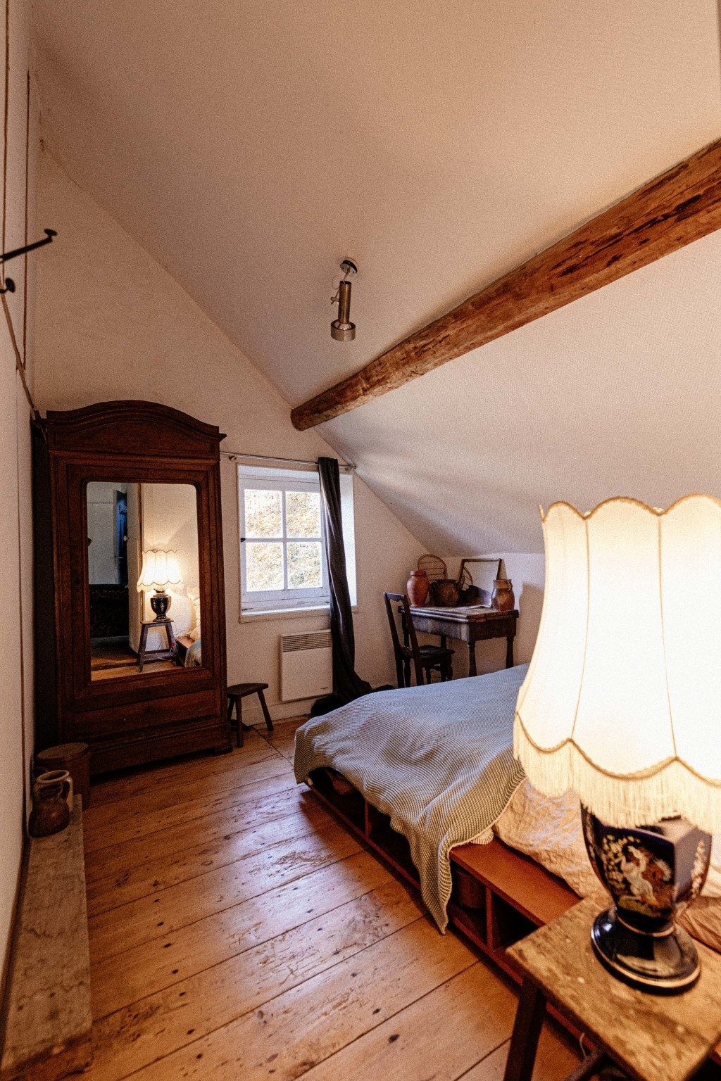 - une grande chambre avec vue sur la forêt