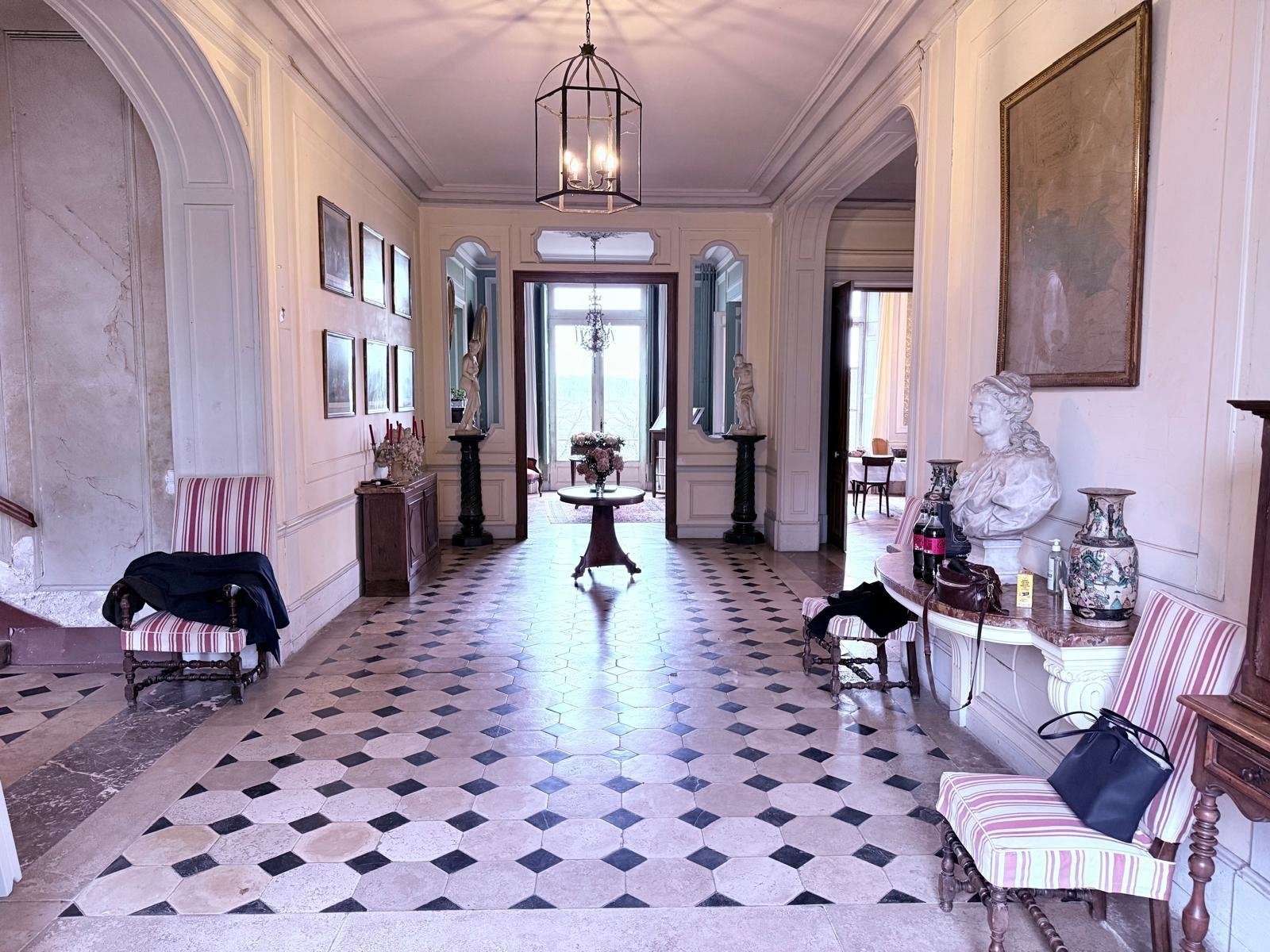 RDC : grand hall avec carrelage, grand salon, petit salon, salle à manger, cuisine, bureau, salle de jeux grandes HSP.