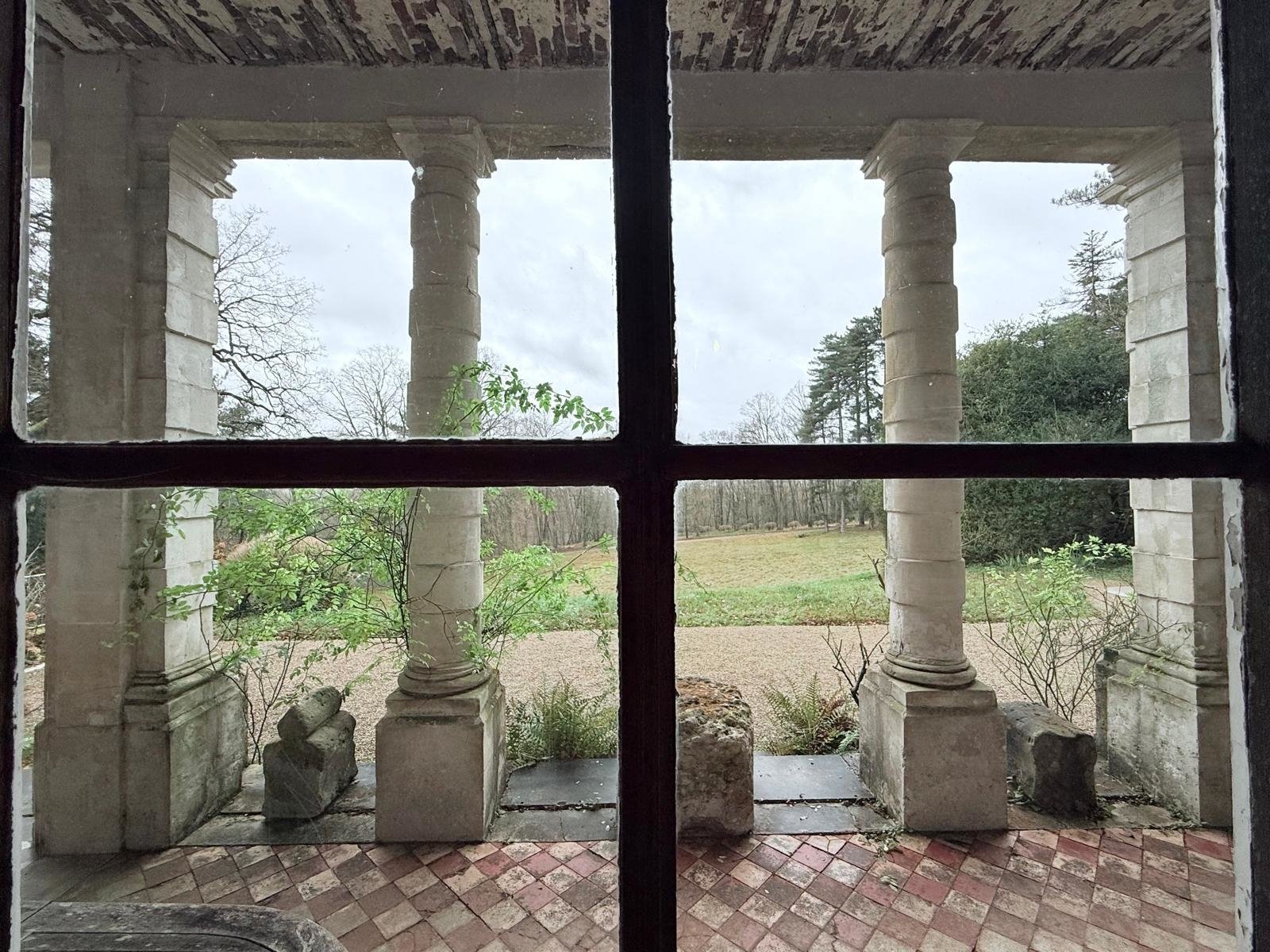 Extérieur : une petite chapelle privée avec autel et vitraux, dans son jus. Grands espaces extérieurs, pelouse et gravillons autour de la maison.