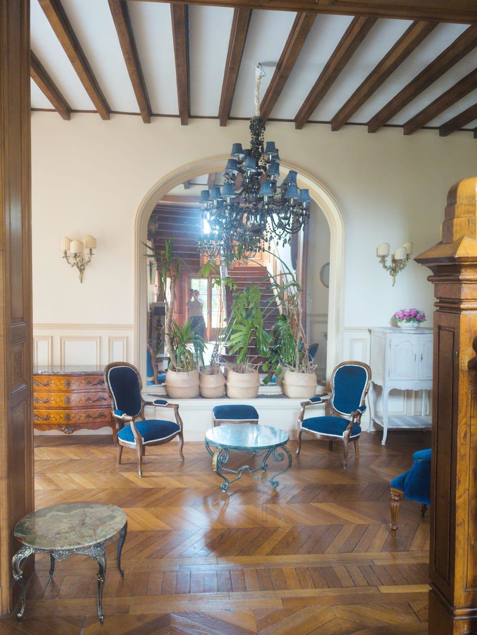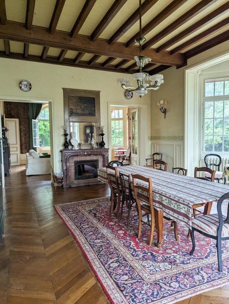 Maison de maître de 500 m2 avec escalier majestueux et de nombreuses pièces avec meubles d'époque.