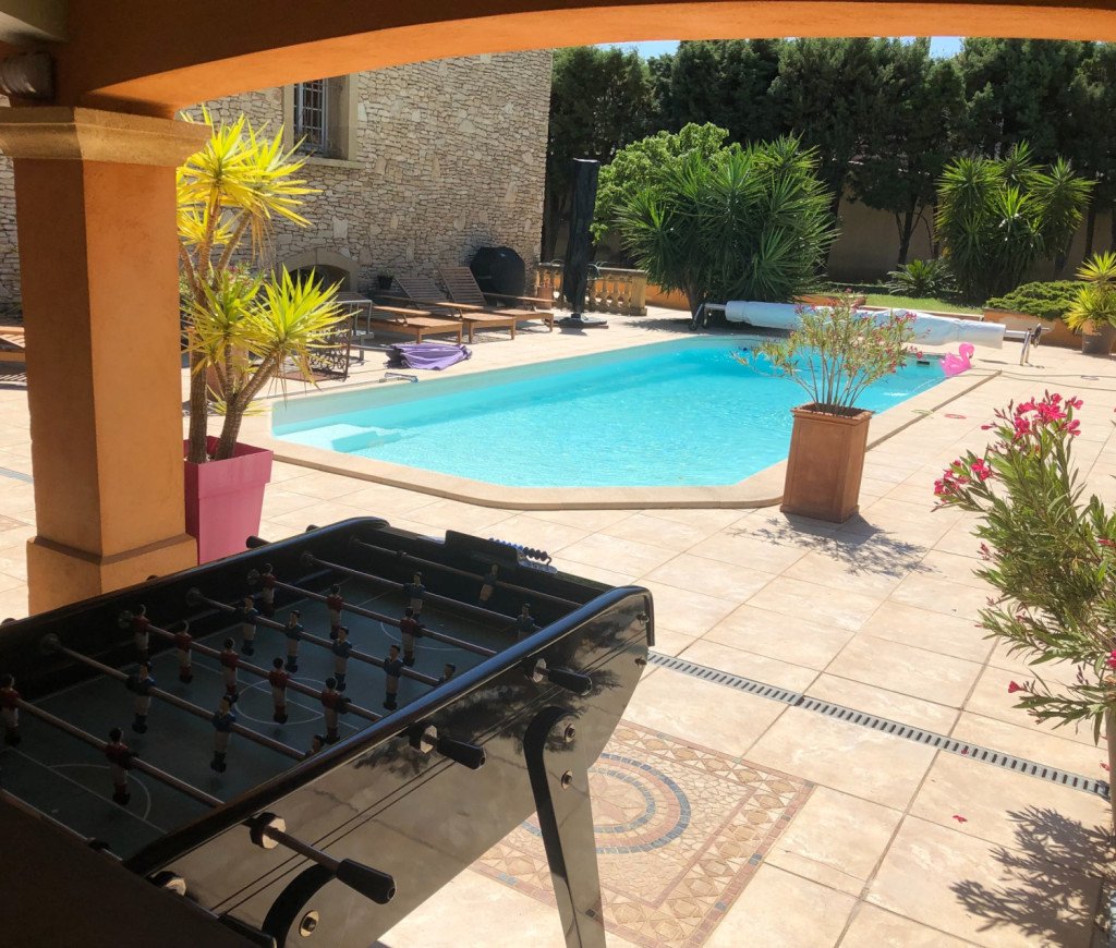 Grande piscine , jardin arboré (terrain de 2500 m2), cuisine d'été, terrain de pétanque, baby foot, table de ping pong, plancha, barbecue.