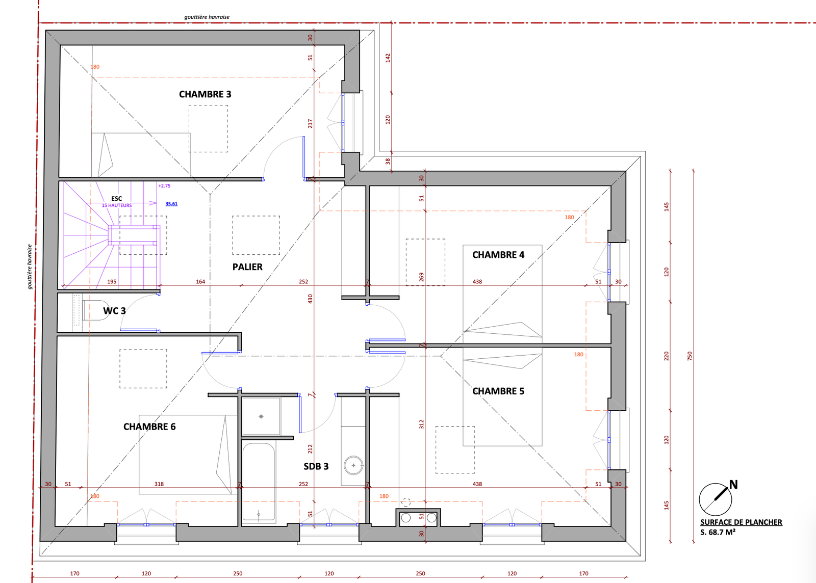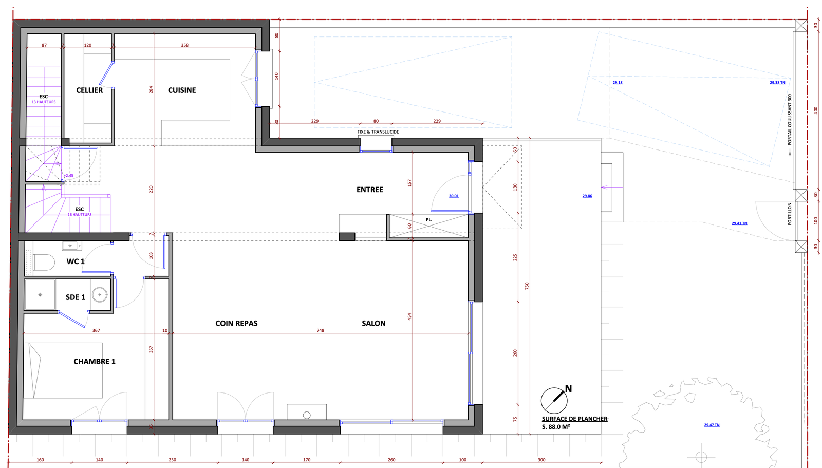 - 1 très grande suite parentale de 70 m² avec 3 mètres de hauteur sous plafond.