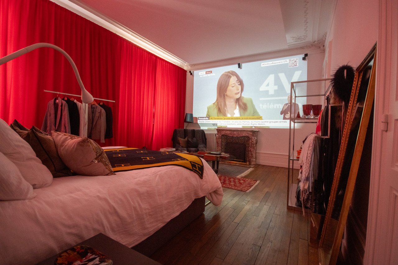 - 1 chambre de maître avec écran de cinéma et salle de bain avec douche, baignoire, double vasque est WC attenante