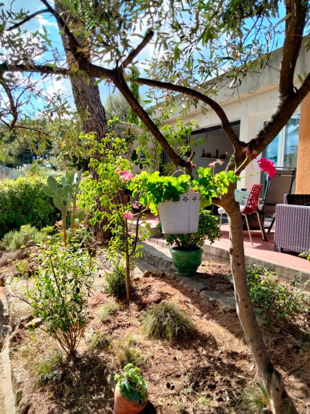 - Grande baies vitrées donnant sur jardin arboré