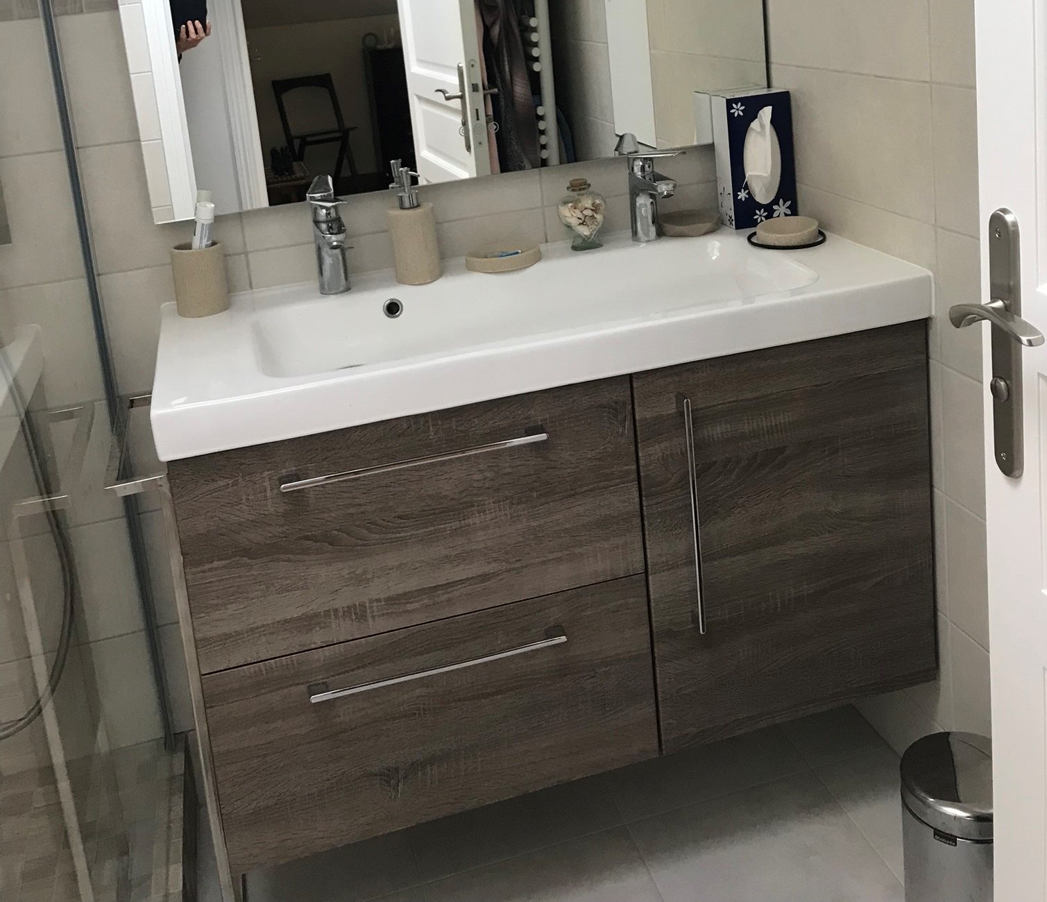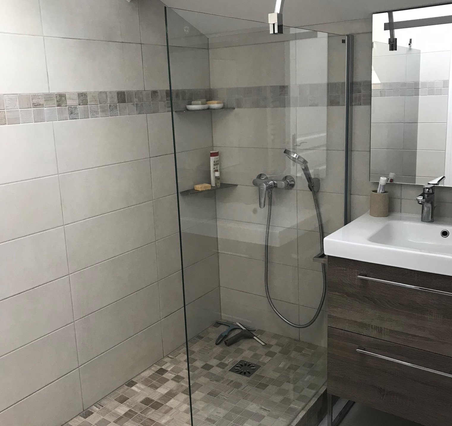 Au sous -sol : une grande chambre avec salle de bain, WC et buanderie.