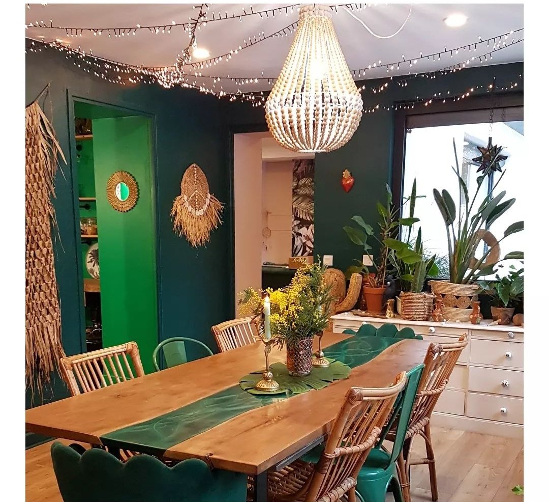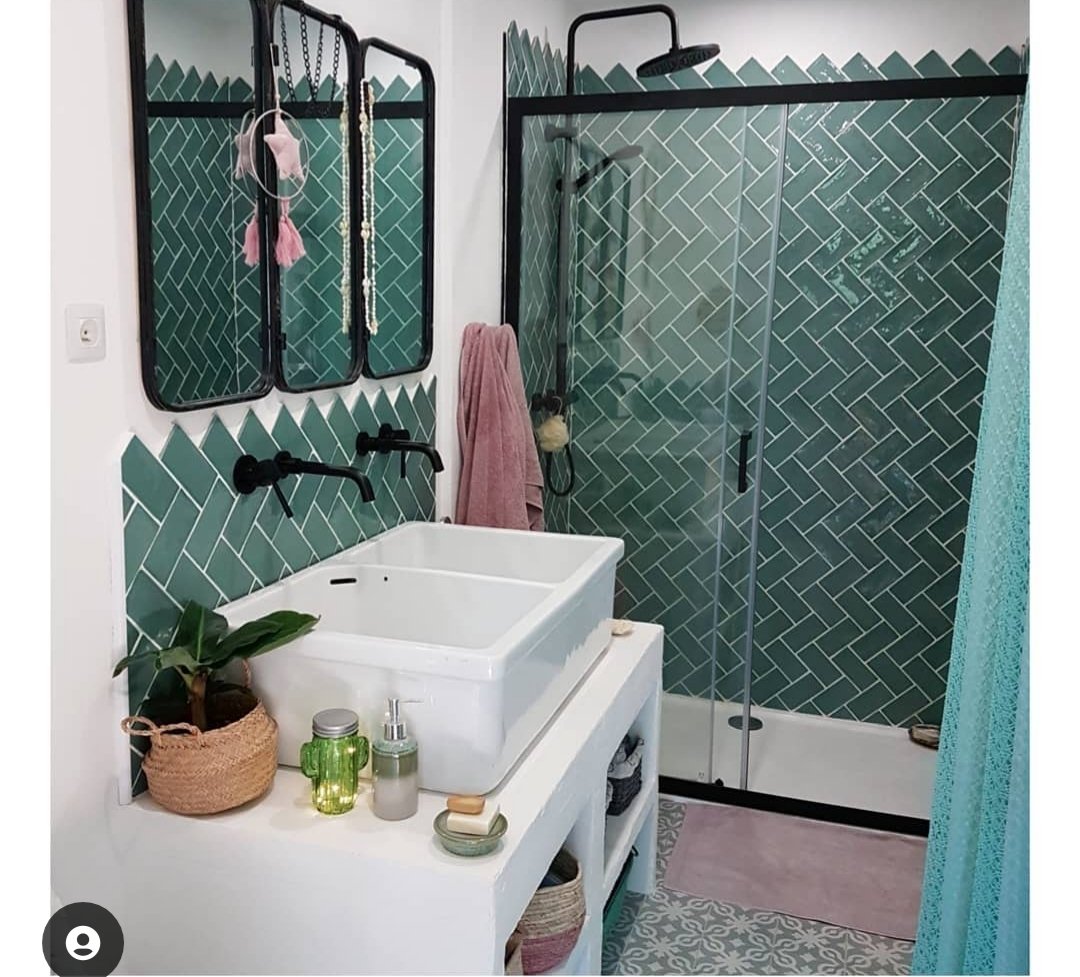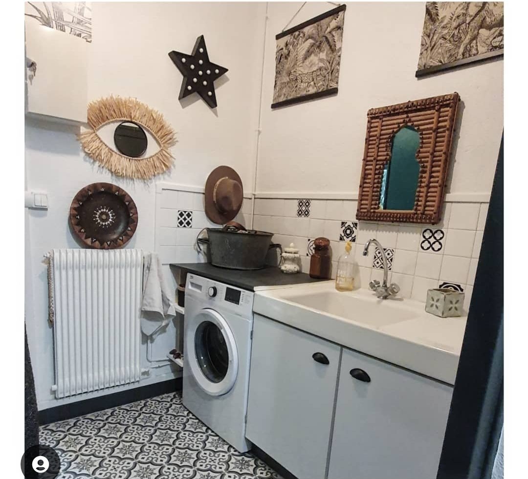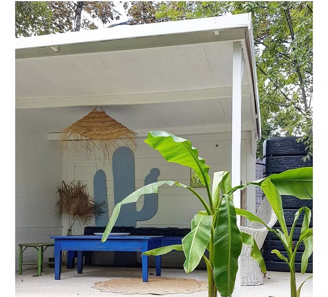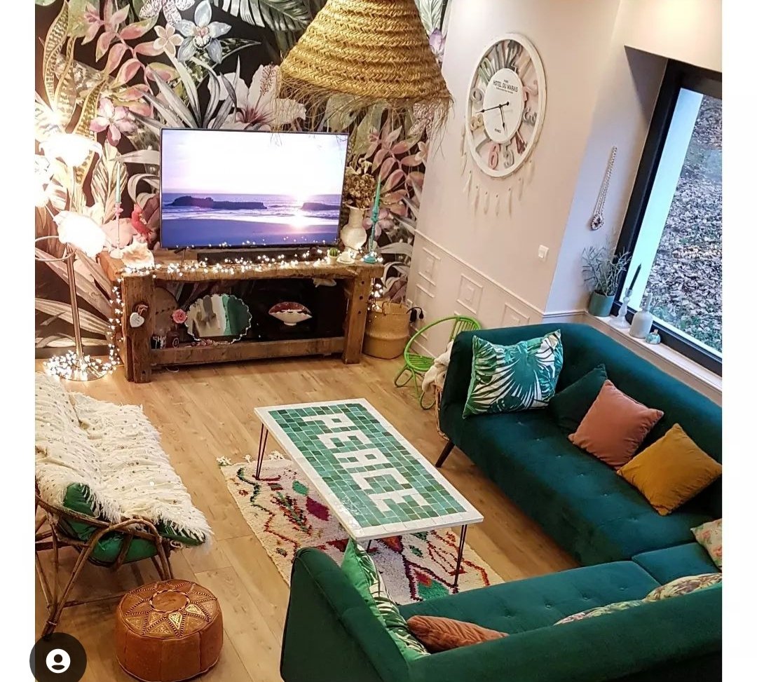 Jolie terrasse en bejmat donnant sur un parc arboré