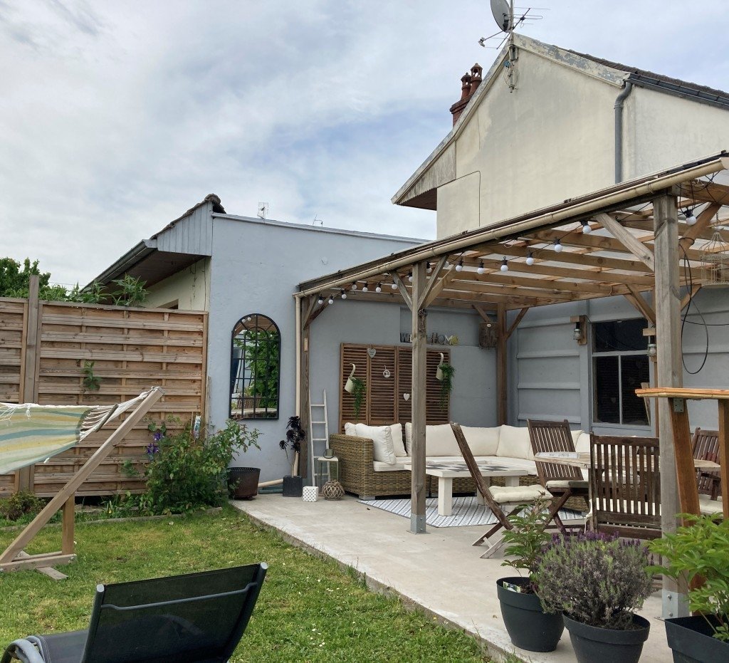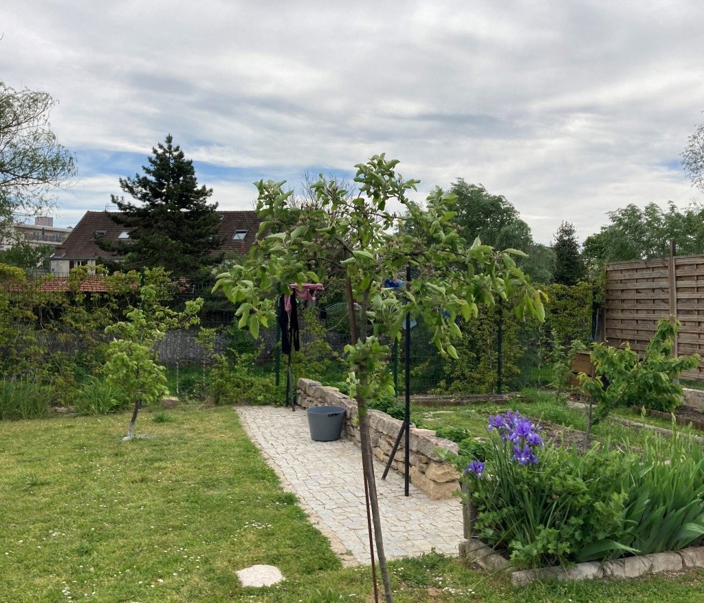 Dans la cour extérieure pavée, il y a 5 garages dont 1 qui est aménagé en atelier de travail.