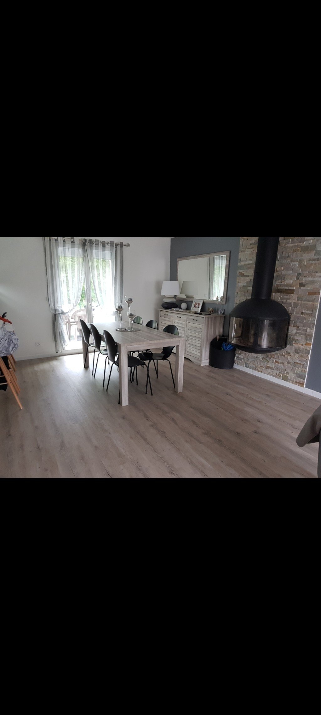 - une très belle pièce de vie de plus de 55m2 avec sa cheminée moderne suspendue qui donne sur une piscine extérieure sans vis a vis en bordure de forêt.