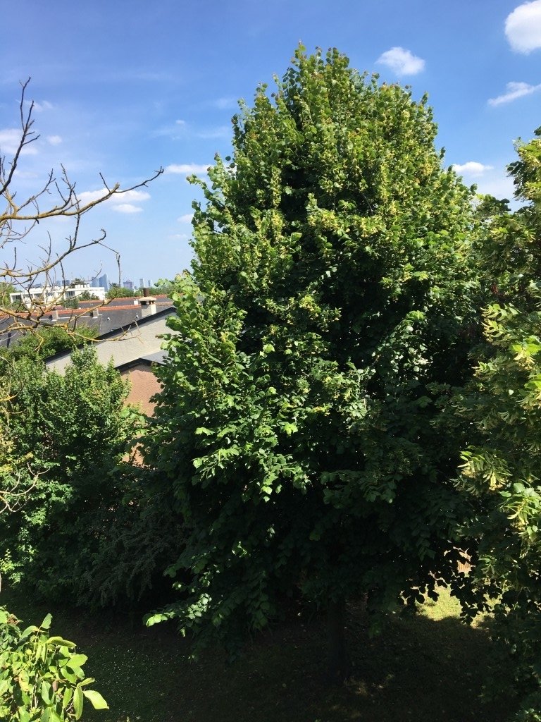 - petit palier servant 2 chambres avec vue sur La Défense au loin et sur les arbres.