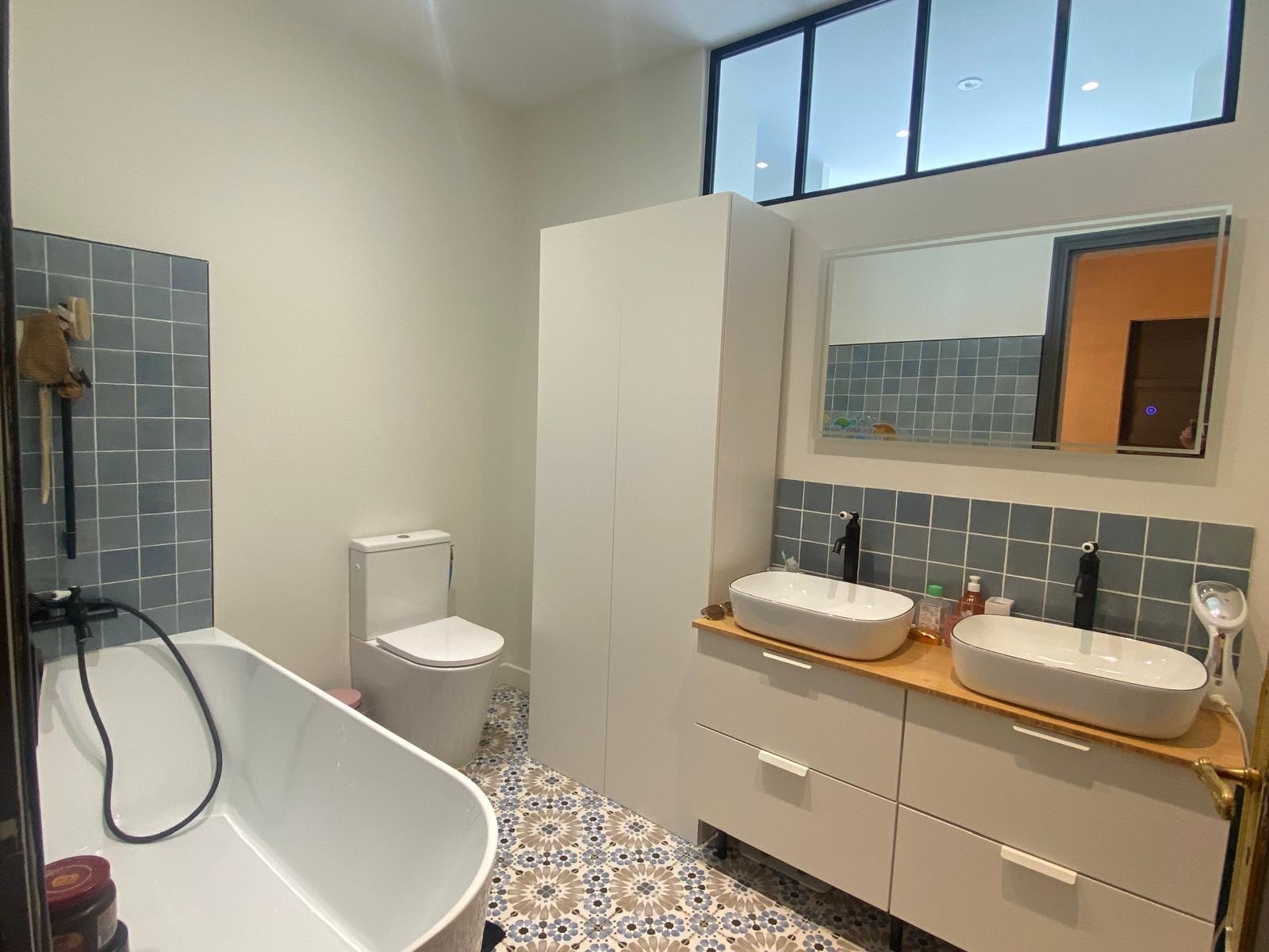 À l’étage, 3 chambres dont une bébé et 2 salles de bain dont une attenante à la chambre parentale.