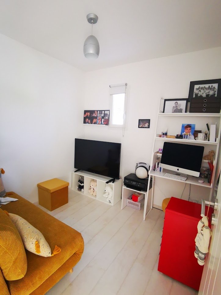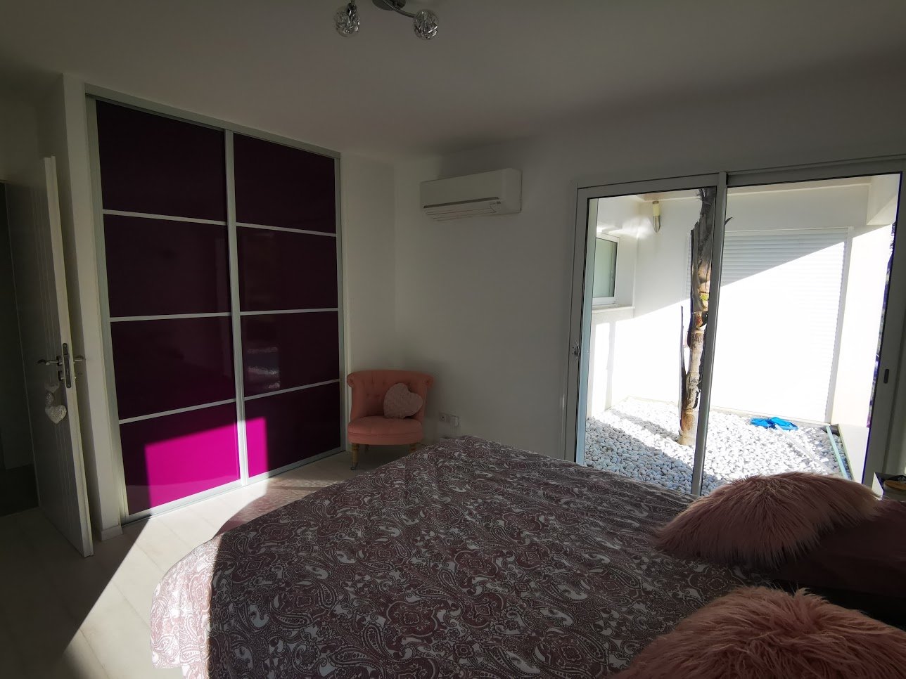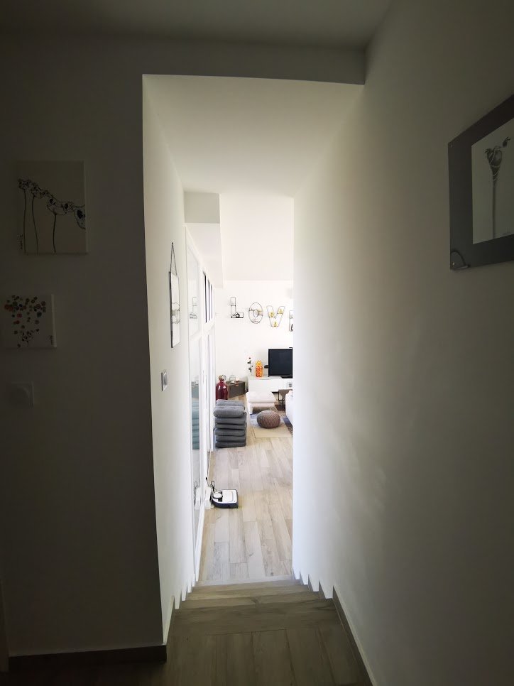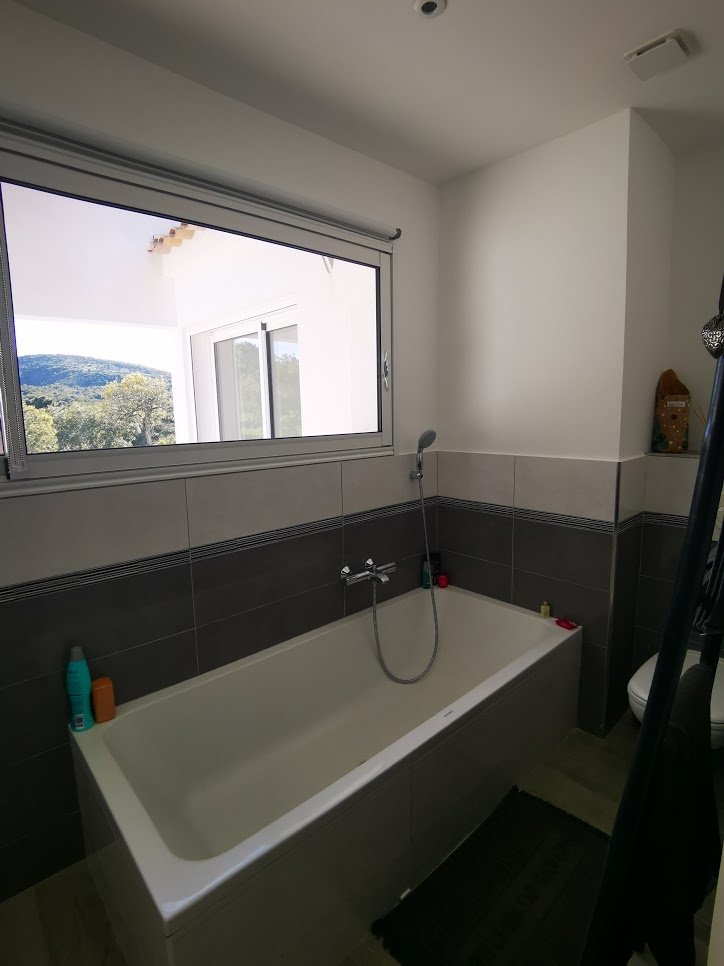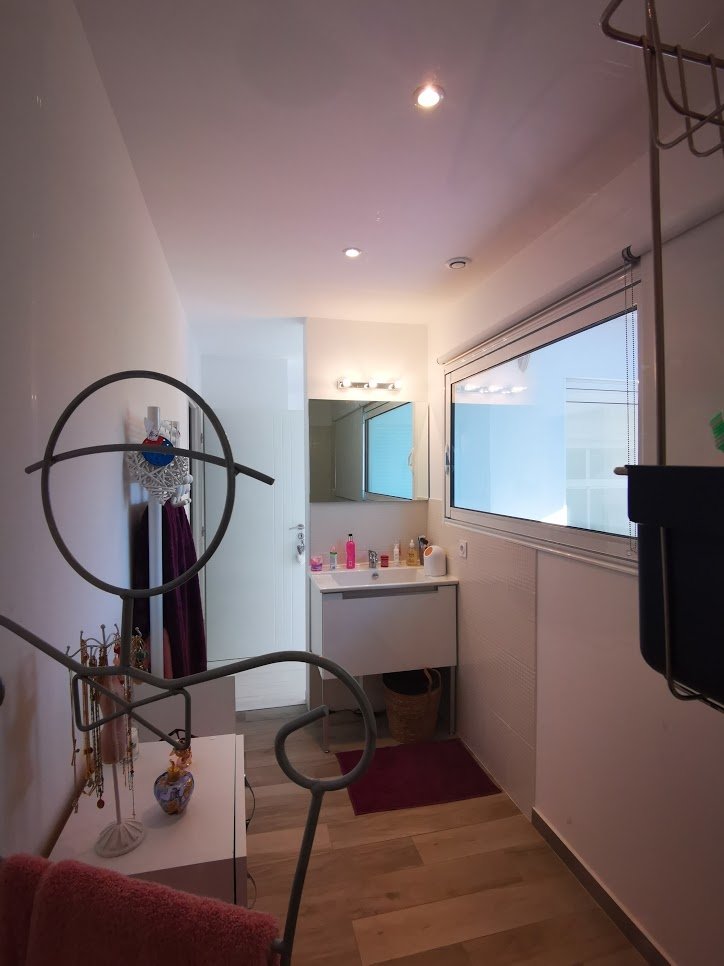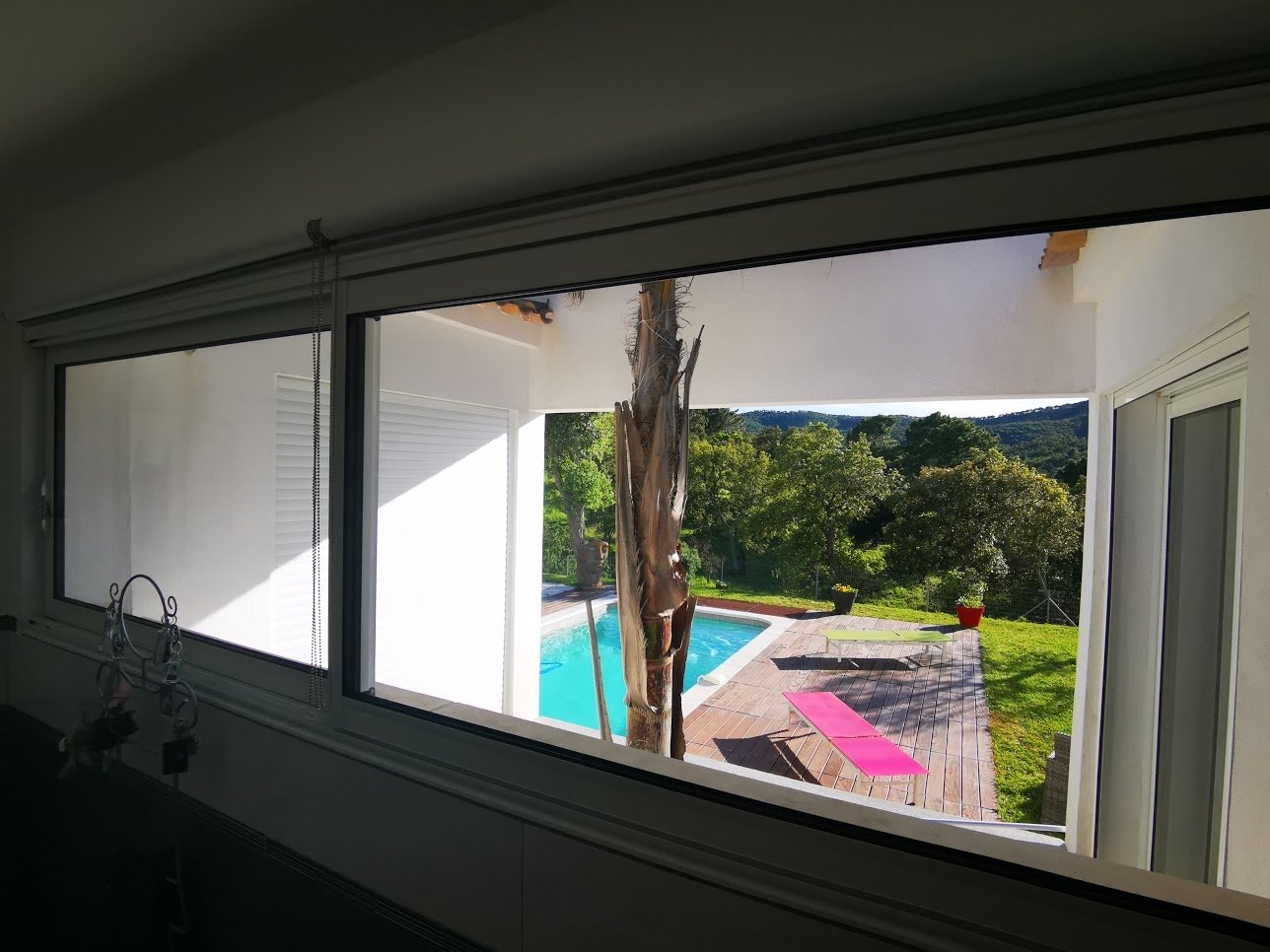 - un salon avec cuisine ouverte (spacieux, lumineux avec de grandes baies vitrées donnant sur l'extérieur)