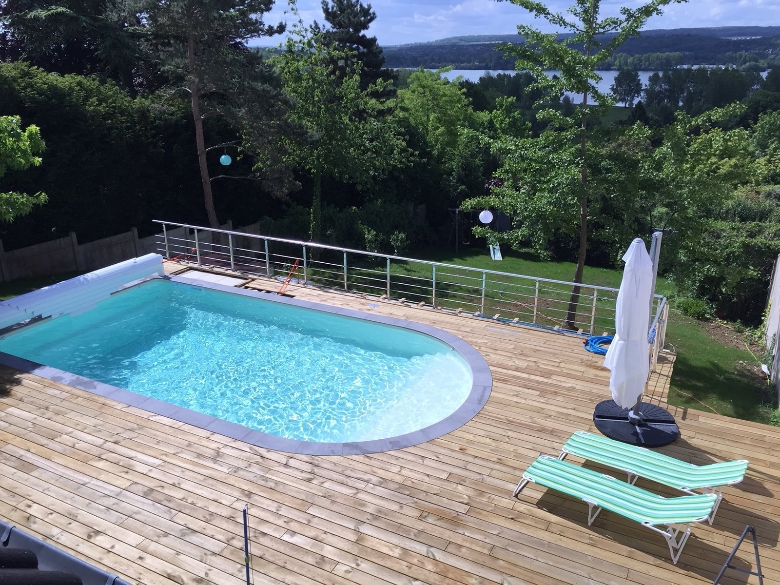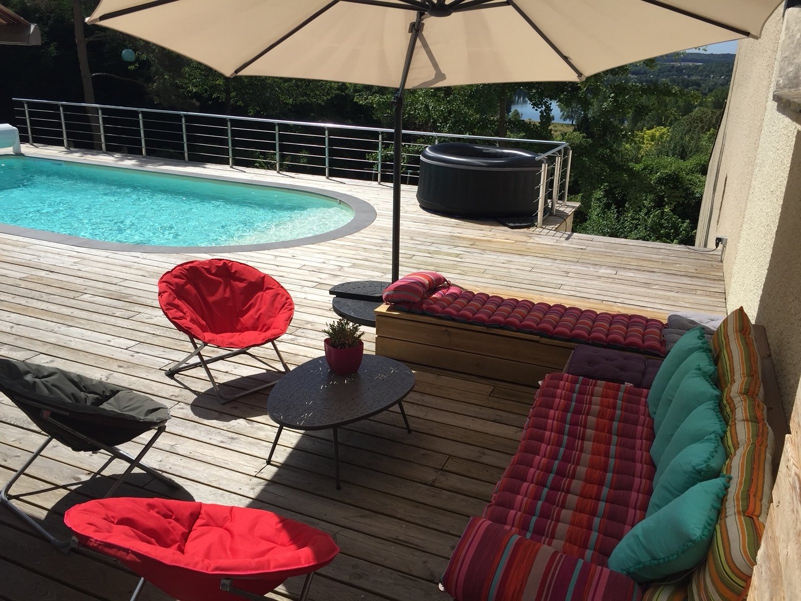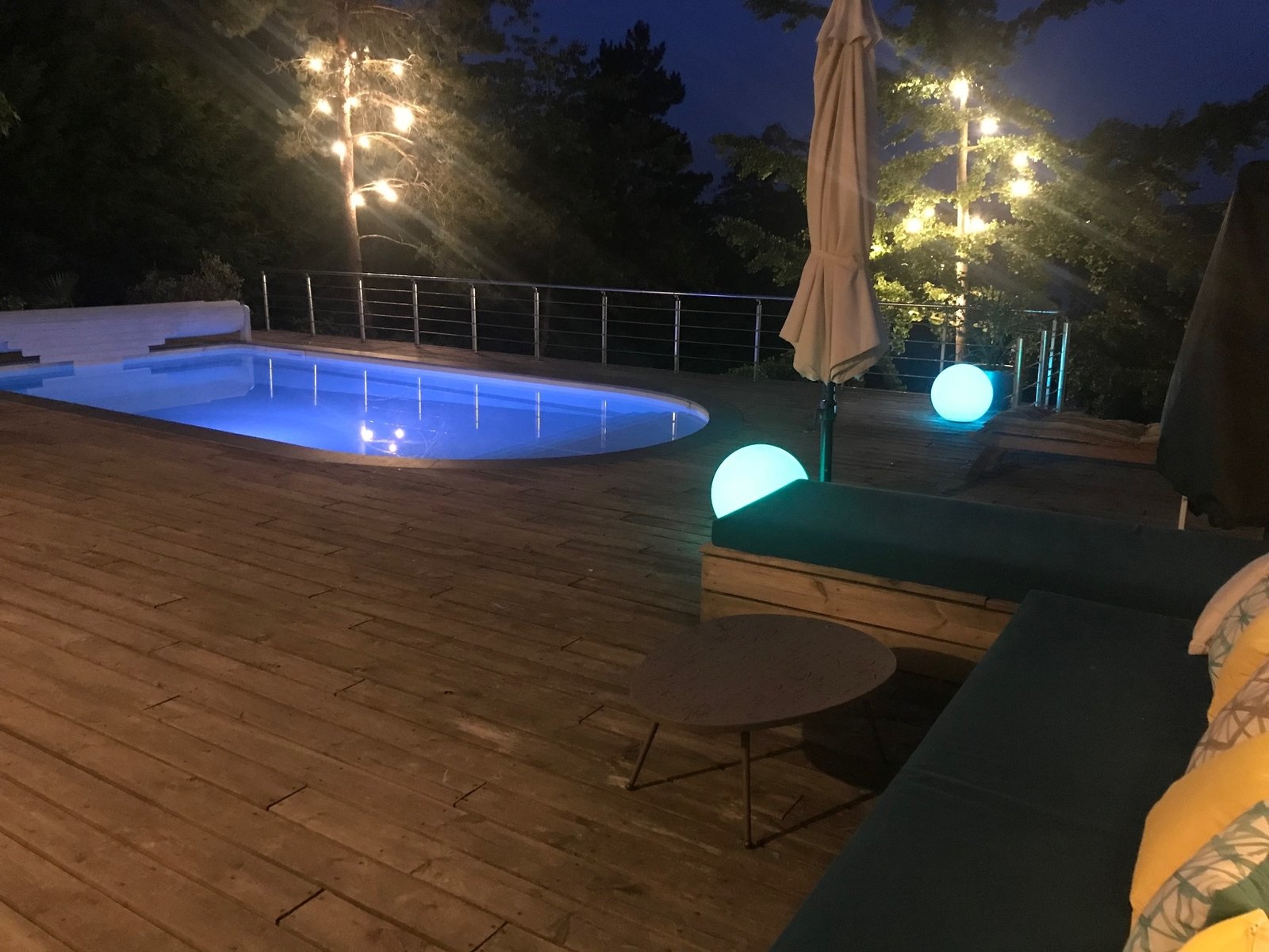 - terrasse en bois de 120 m² avec piscine chauffée sans aucun vis-à-vis