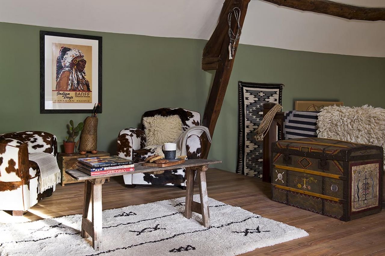 Maison en Normandie avec une déco Native America country, unique en son genre.