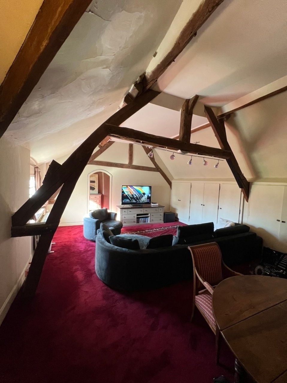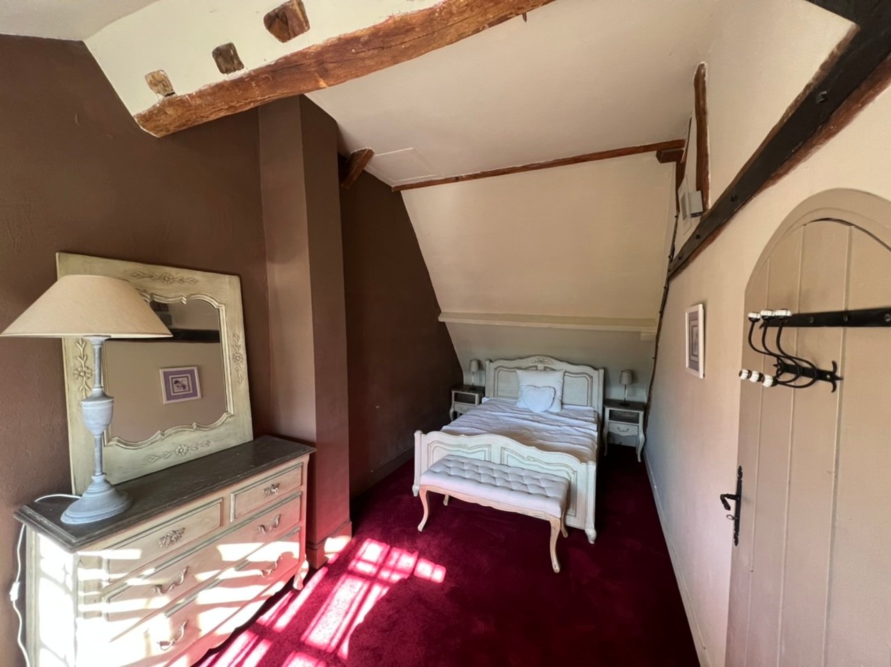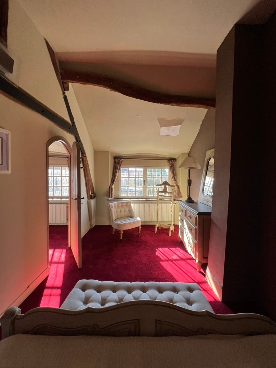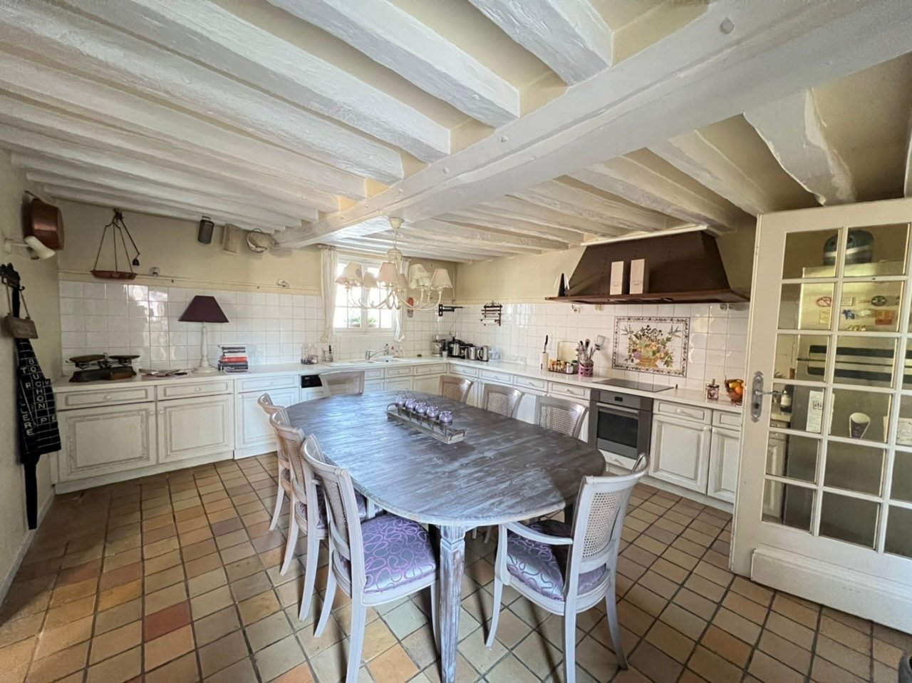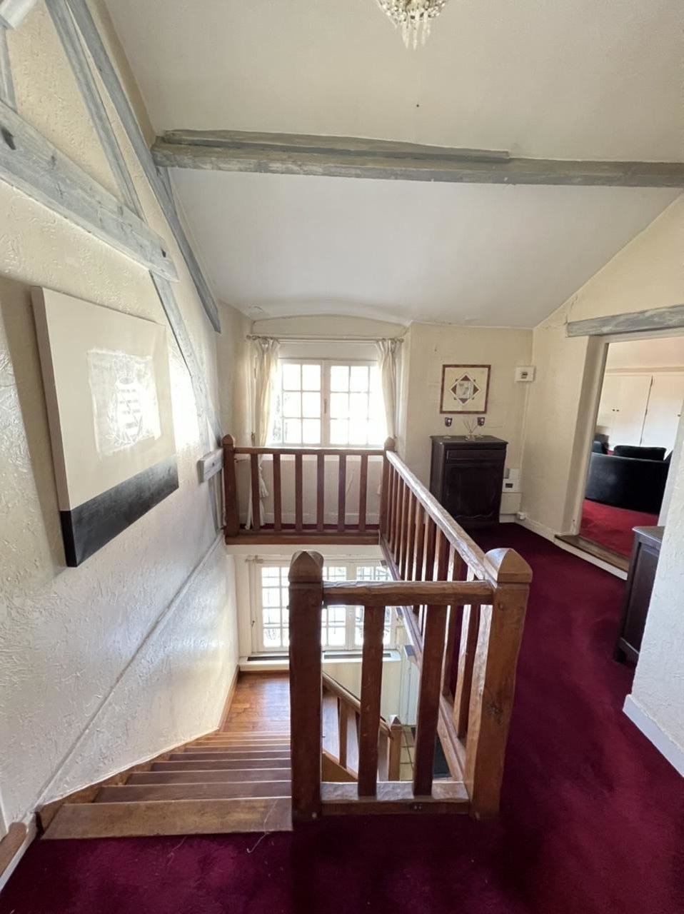 Intérieur : belle entrée, salon avec belle hauteur sous plafond et cheminée, cuisine fermée, salles d'eau, chambres, grande mezzanine