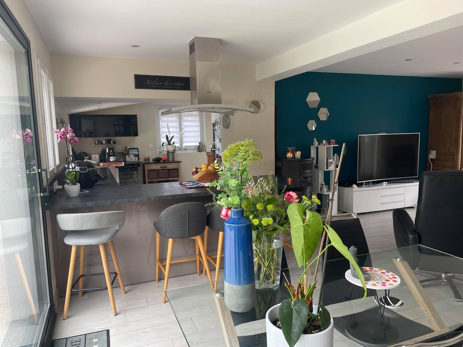 - séjour et salle à manger ouverts sur la cuisine
