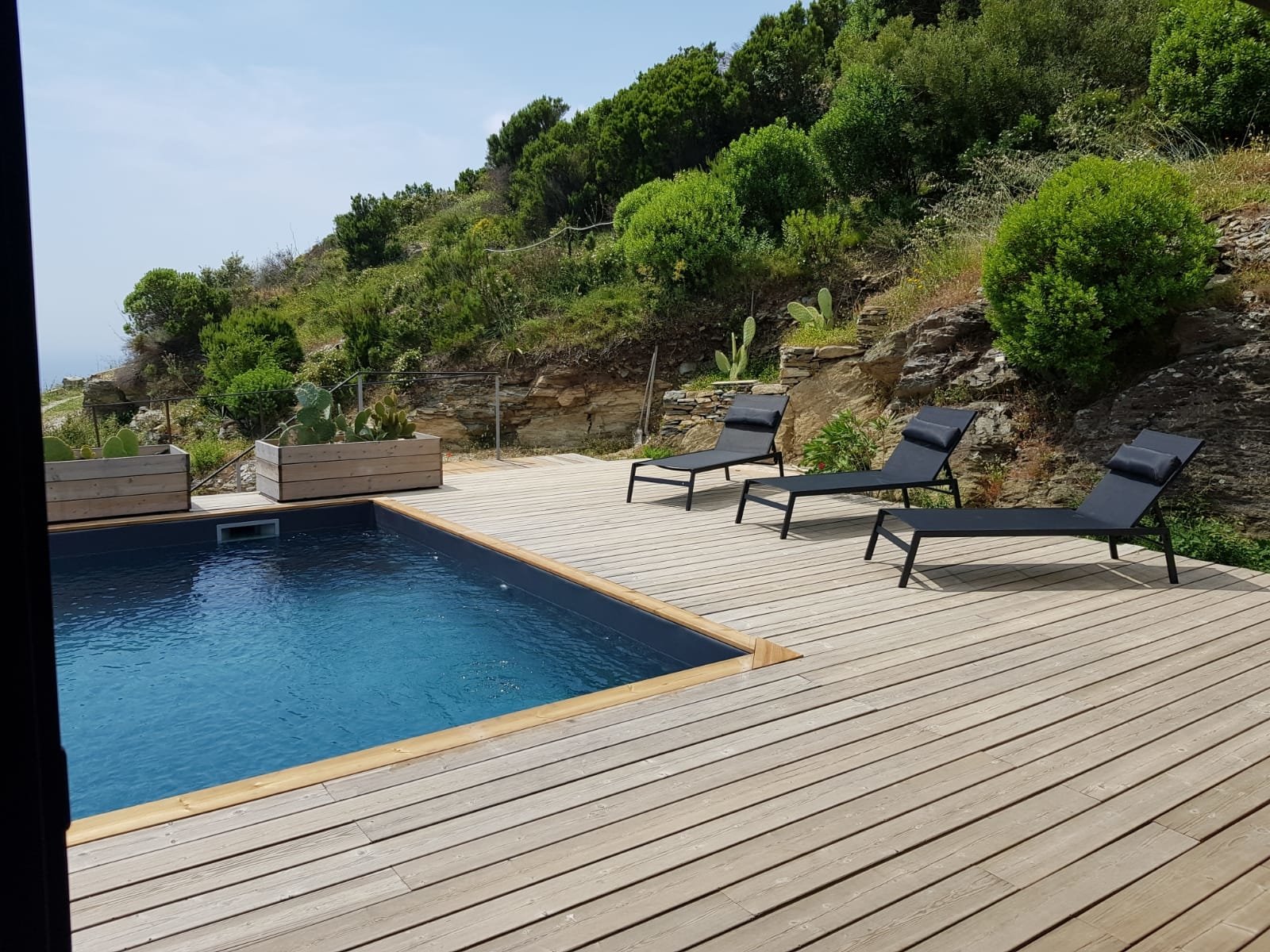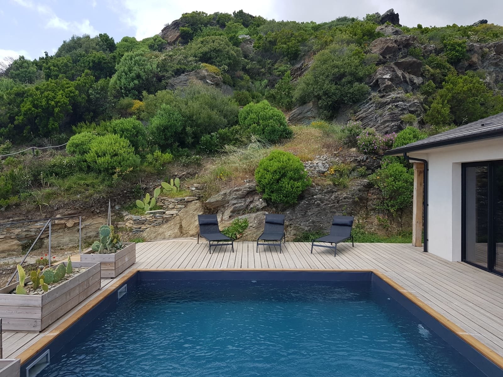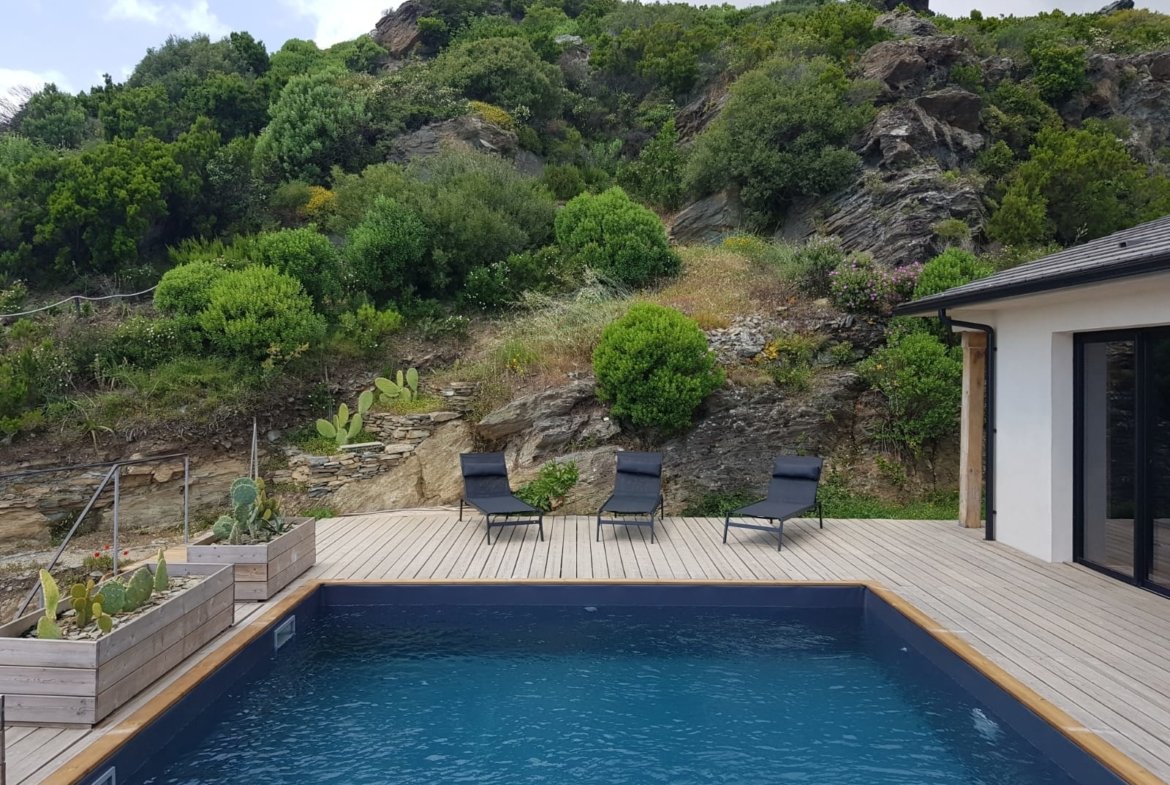 - Une piscine privée extérieure avec bandeau vitré donnant une vision sous marine depuis le module chambres.