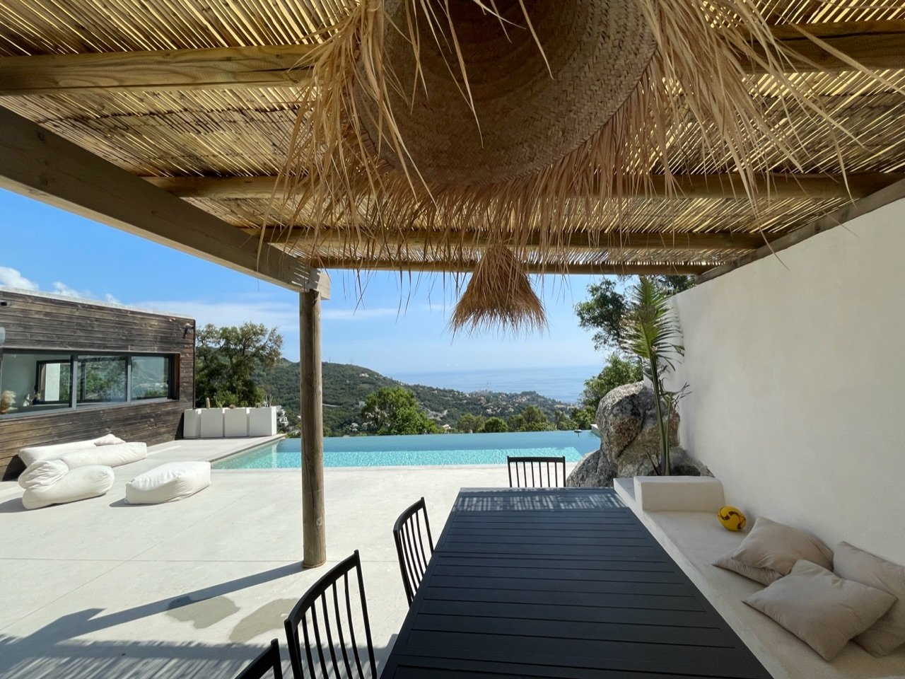 Maison avec pièce à vivre de 90m2 , très lumineuse avec la aussi une magnifique vue mer et terrasse/piscine.
