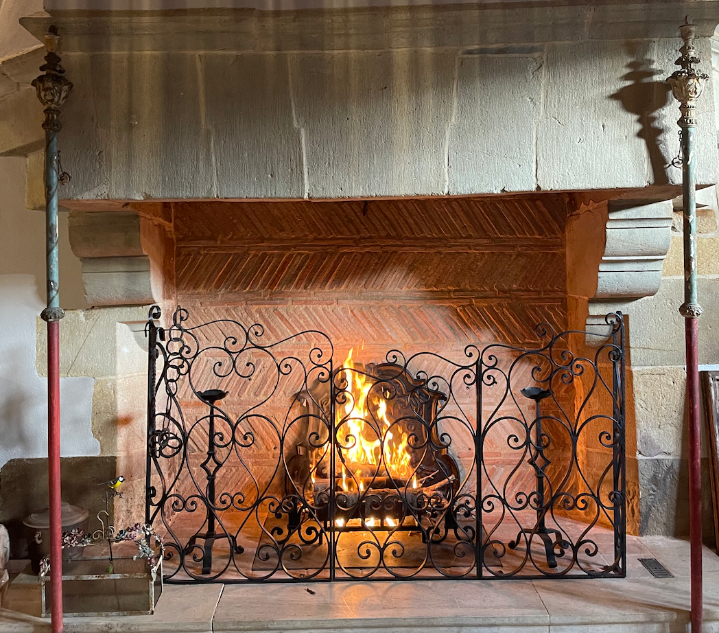 Cuisine style campagnard avec fenêtre gothique et grille en fer forgé
