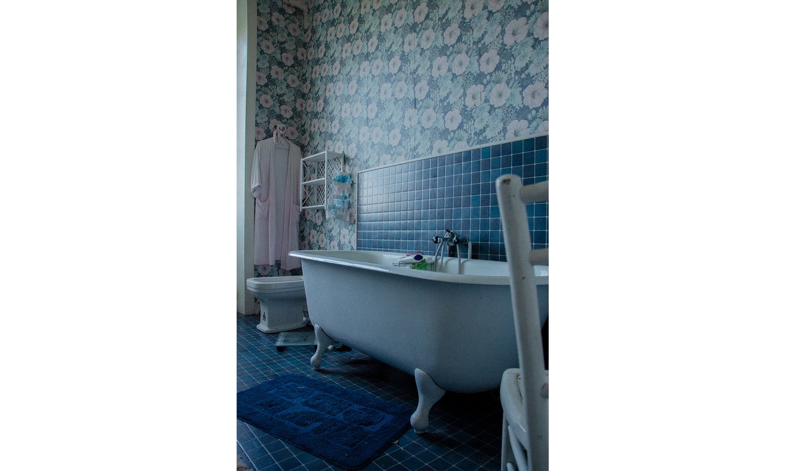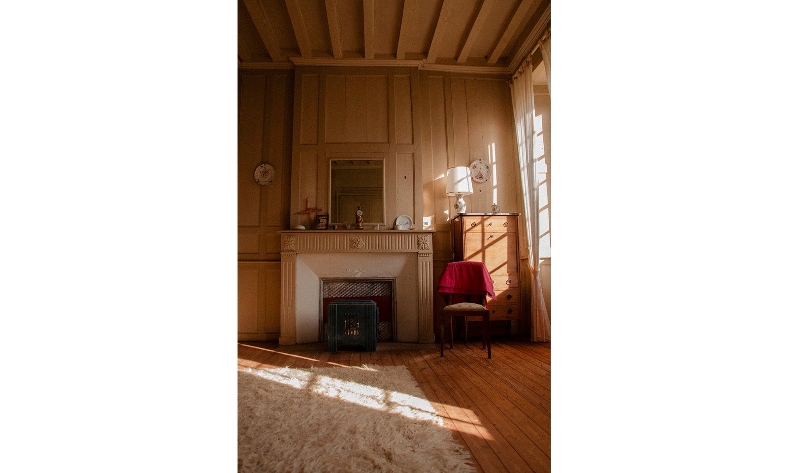 - Salon composé d'une cheminée, de tapisseries, de vieux meubles et d'un piano demie queue.