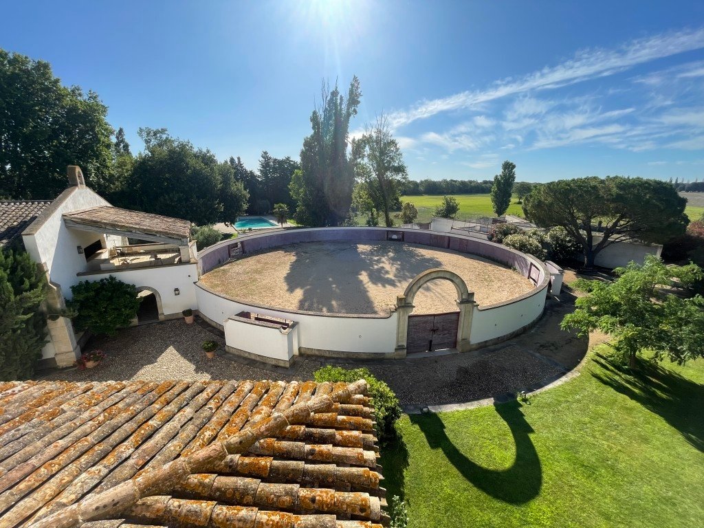 Le mas bénéficie d’un patio intérieur de 600 m² de type andalou avec une fontaine en pierre. Des écuries de standing ainsi qu’un grand manège de 300 m² en pierre. Une arène pour des spectacles équestres ou de tauromachie est présente sur le domaine.