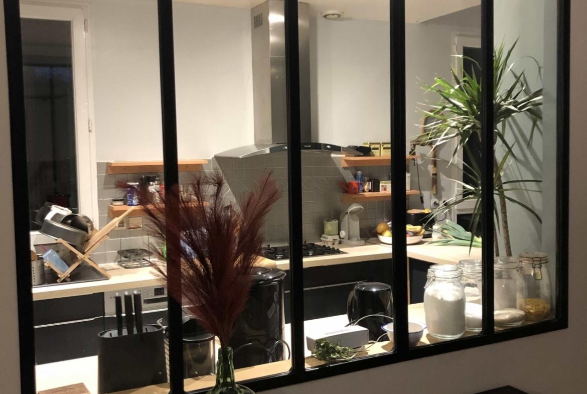 - d'une grande cuisine ouverte sur le salon par une verrière style industriel