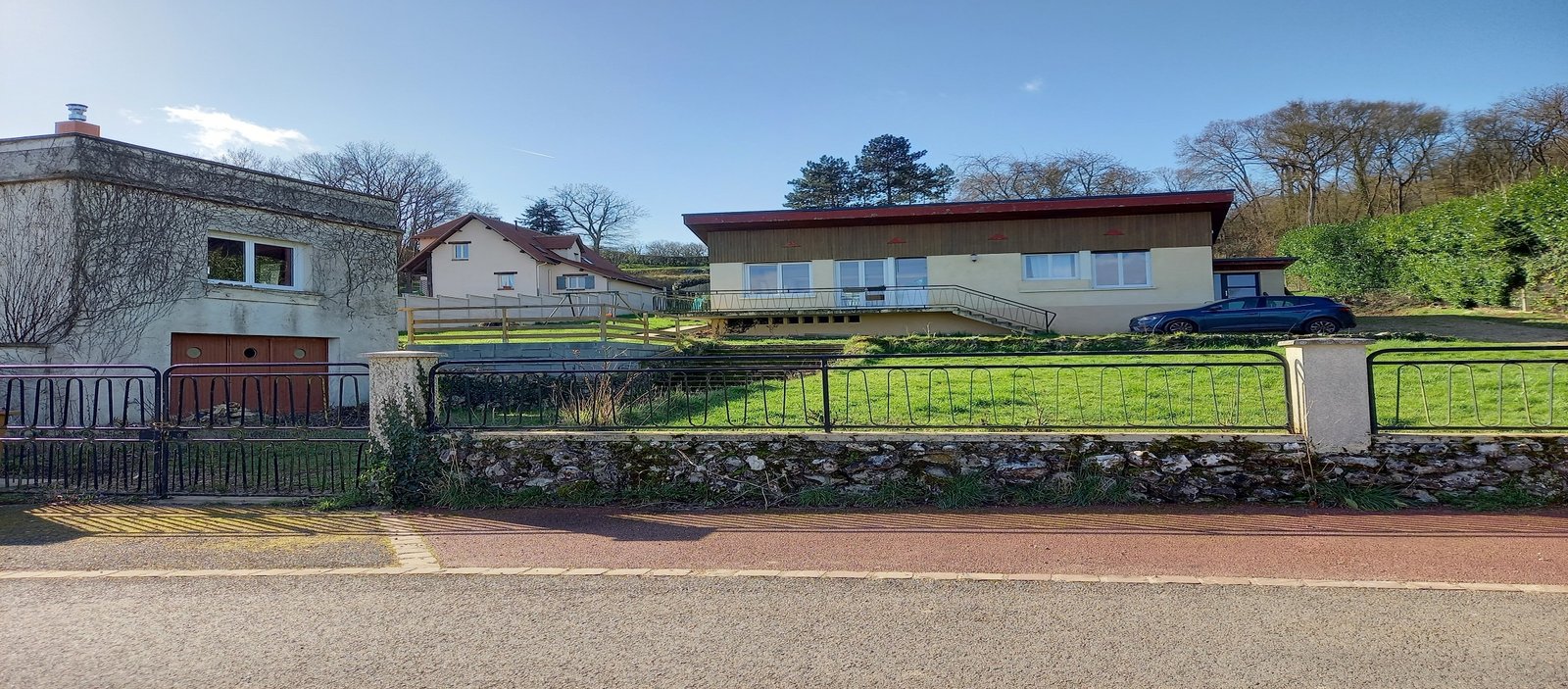 2800m2 de terrain en tout dont 700m2 en façade, avec portail coulissant et allée de gravier et une annexe de 2 étages non utilisable.