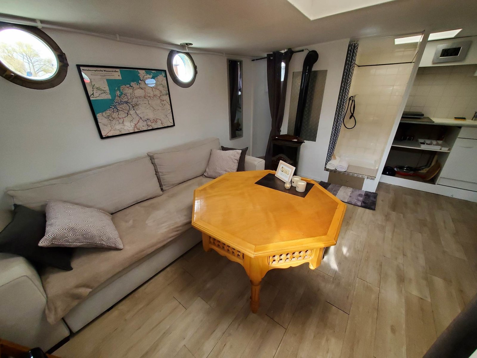 En plus une belle timonerie de 5 mètres carrés avec le poste de conduite,