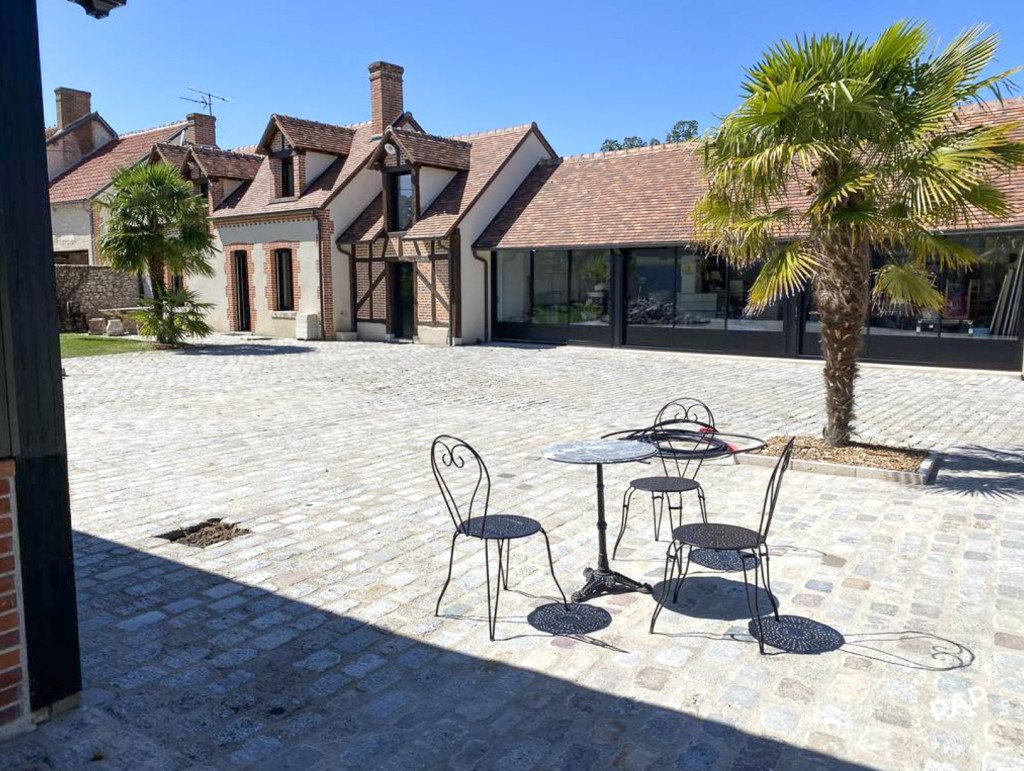 Il y a aussi un deuxième espace de réception vitré, préalablement réaménagé, avec un plafond cathédrale et des murs blancs, équipé de tout le matériel nécessaire pour des réunions, y compris de grandes tables et des fauteuils de qualité, dans un esprit chic. Ce deuxième espace mesure 60 m²