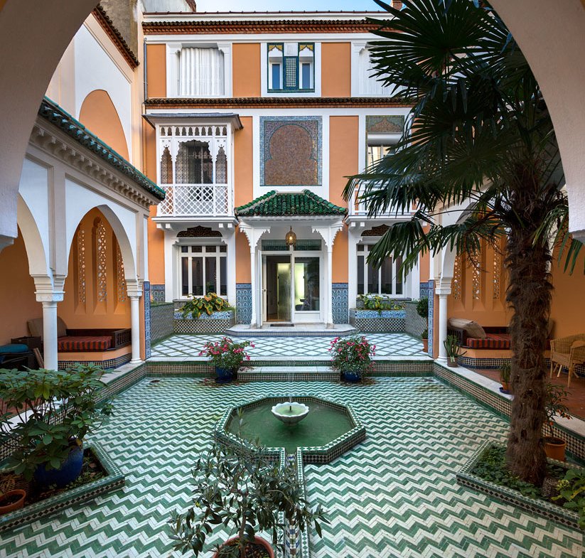 Ce Riad comprend un magnifique patio et sa fontaine centrale de 120m2 venu du Maroc dans les années 1930.