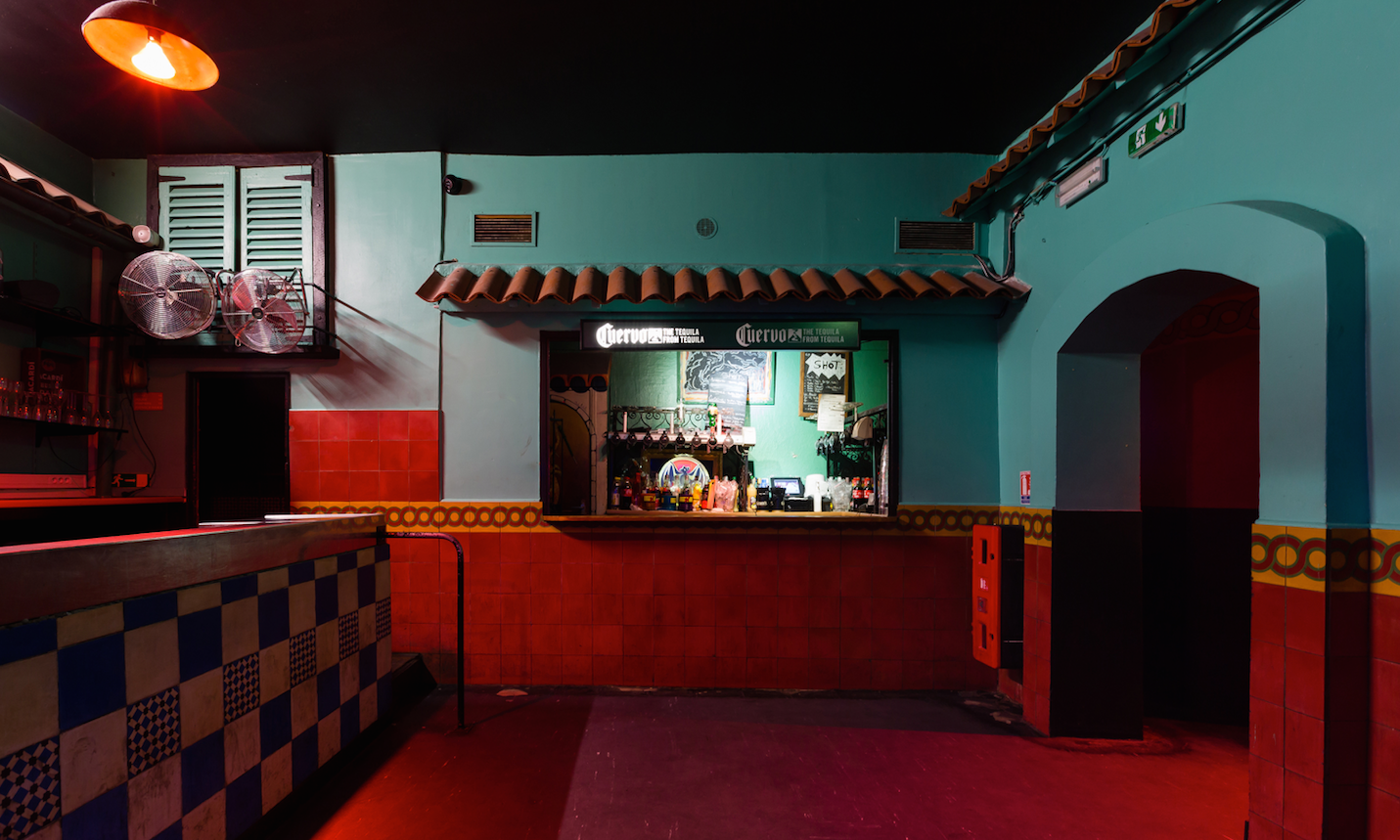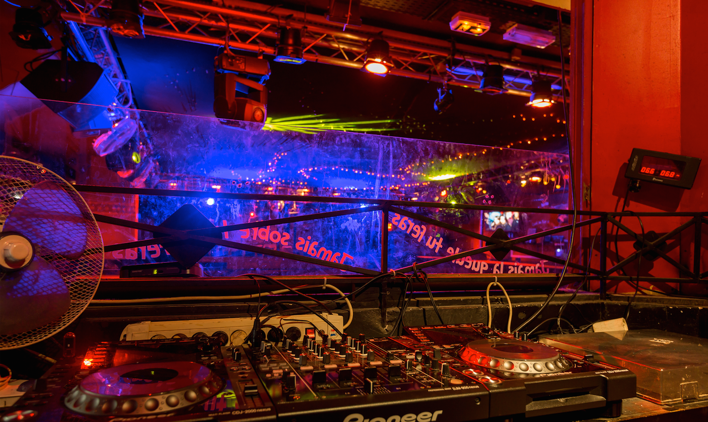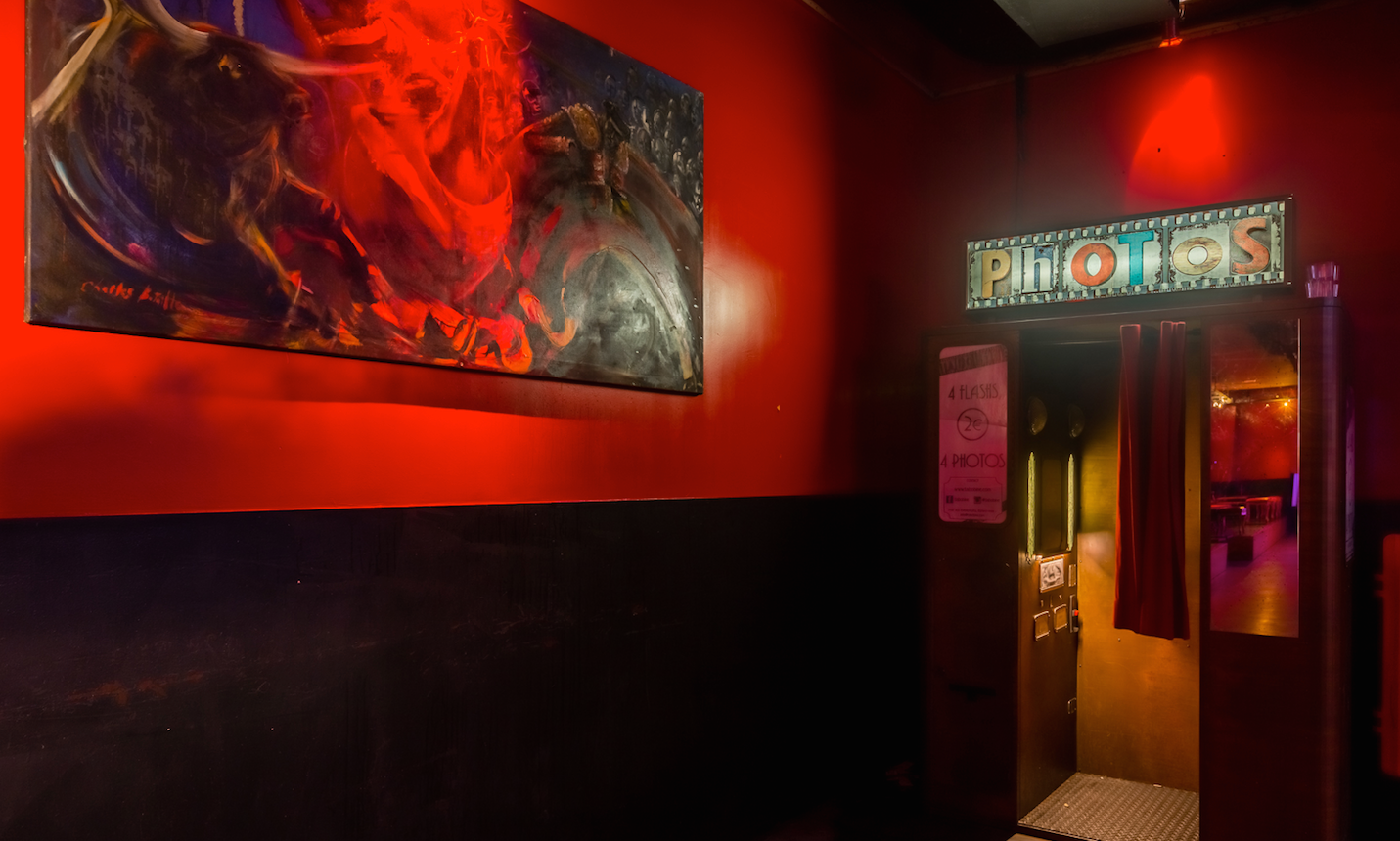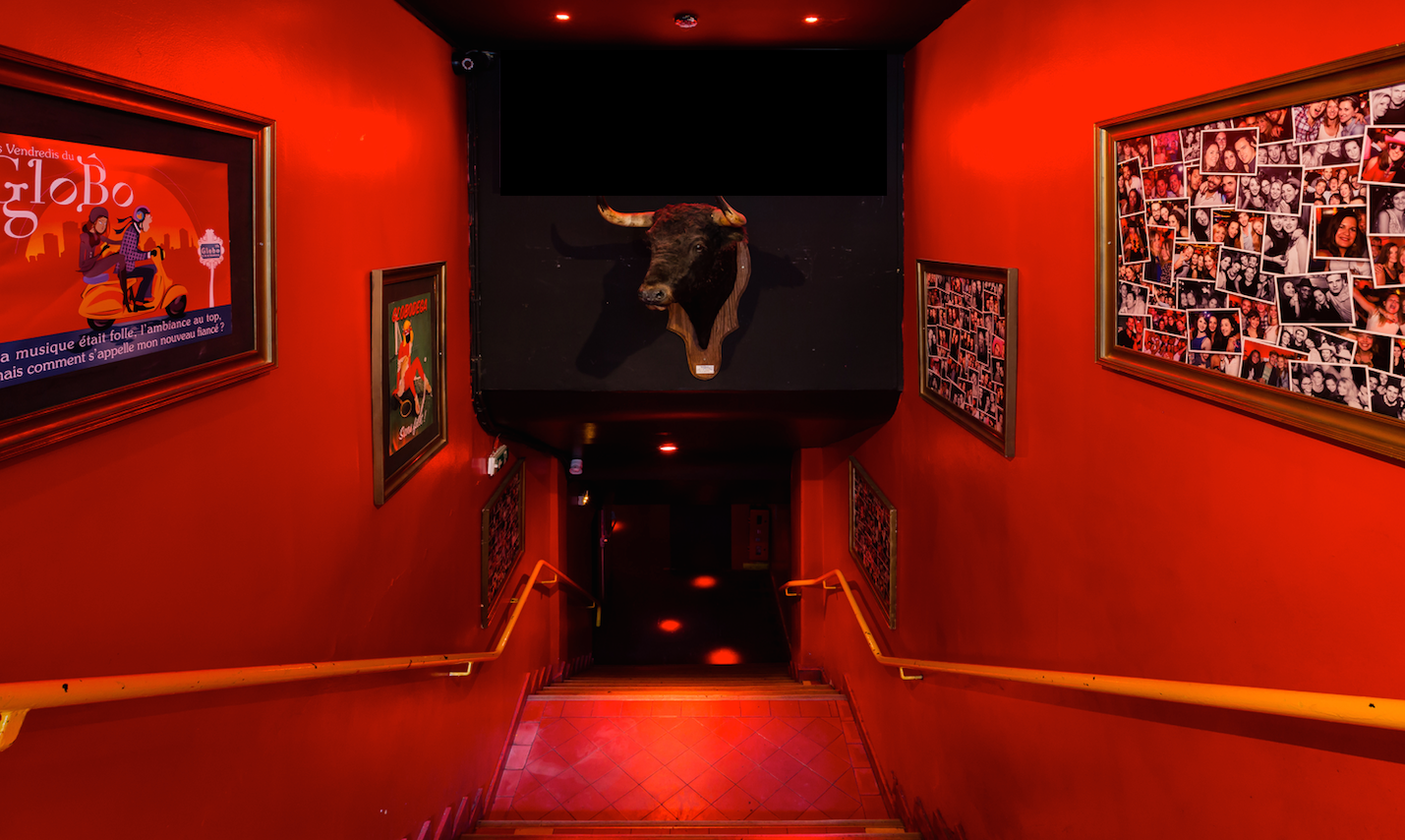 Une grande salle de 317 m² avec un bar (avec des toilettes, une cabine DJ, un photomaton tabobine, une scène/estrade, du mobilier).