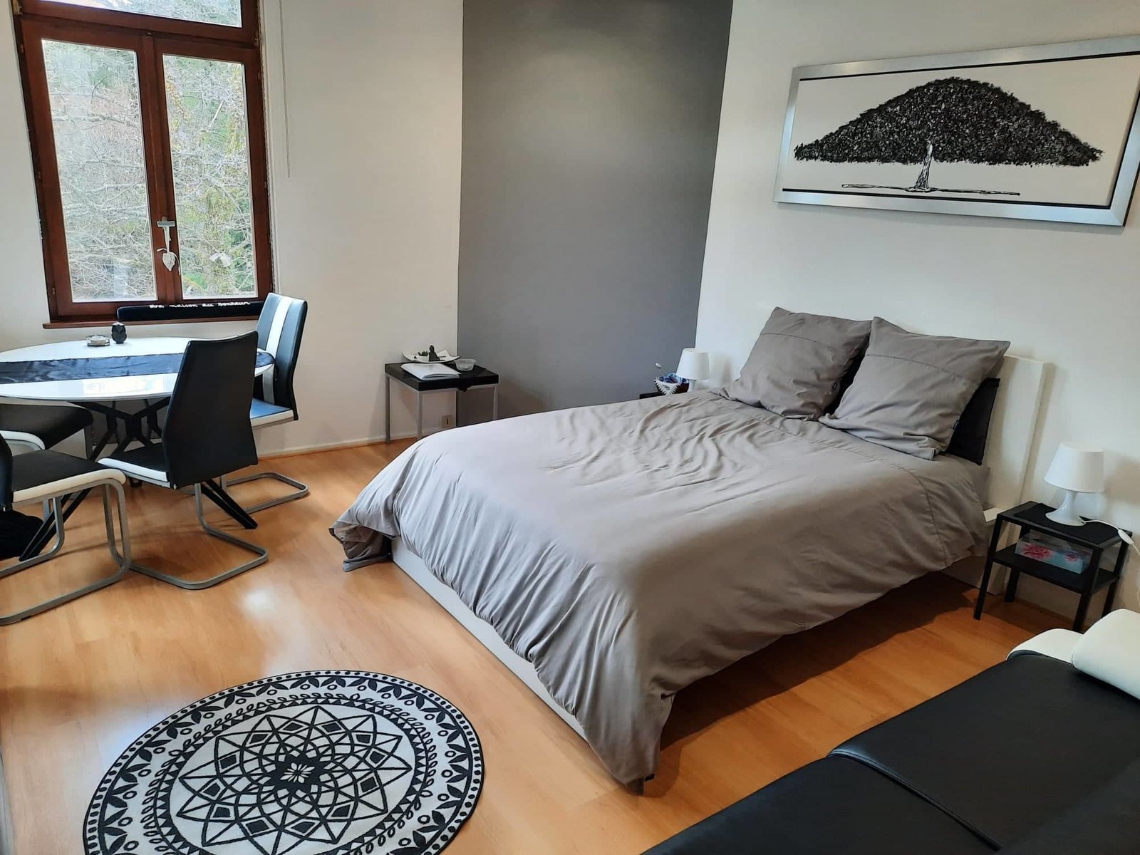 - pièce à vivre avec coin nuit, salon, cuisine équipée