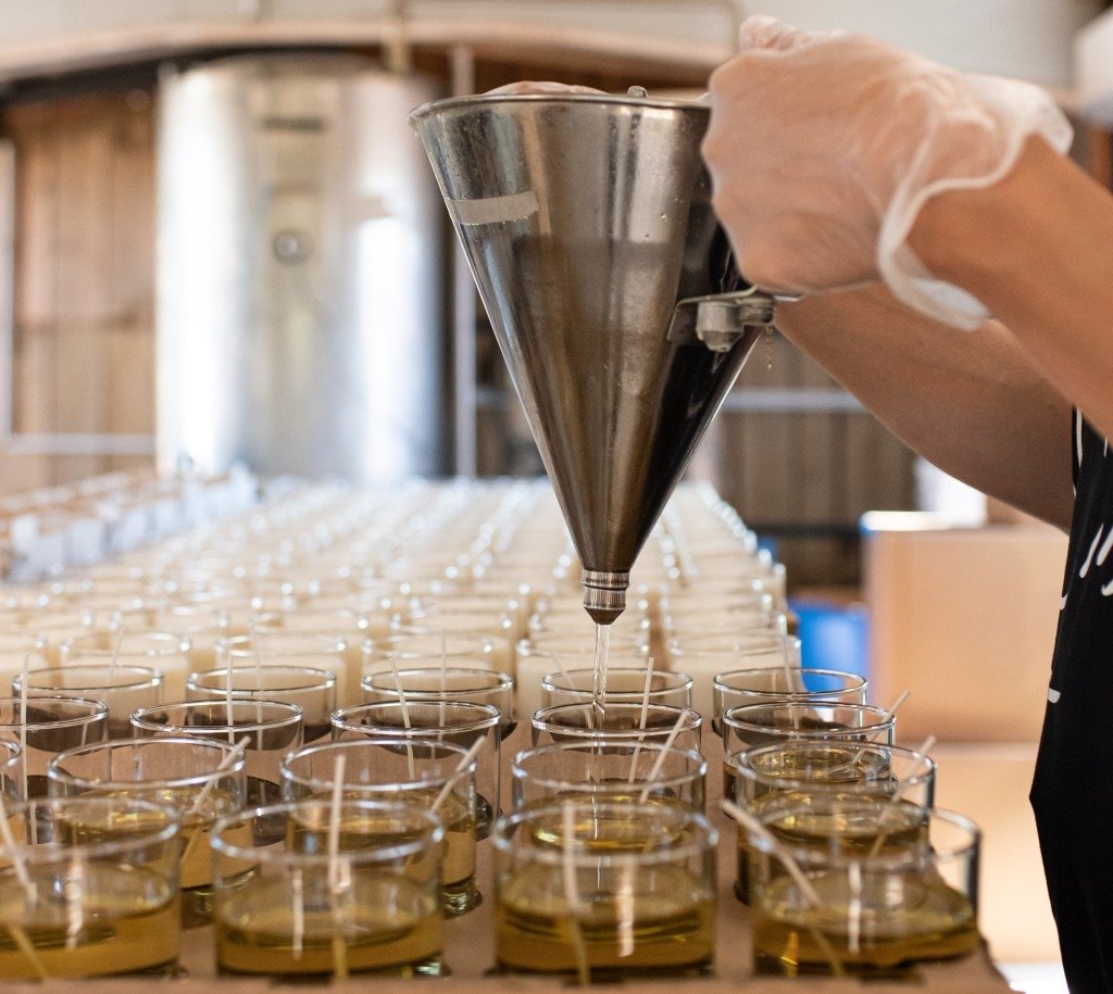 Anciens box à chevaux transformés en atelier de fabrication de bougies parfumées.