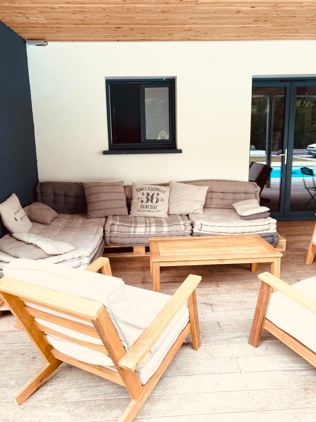 D’une grande terrasse avec table à manger, salon de jardin et barbecue
