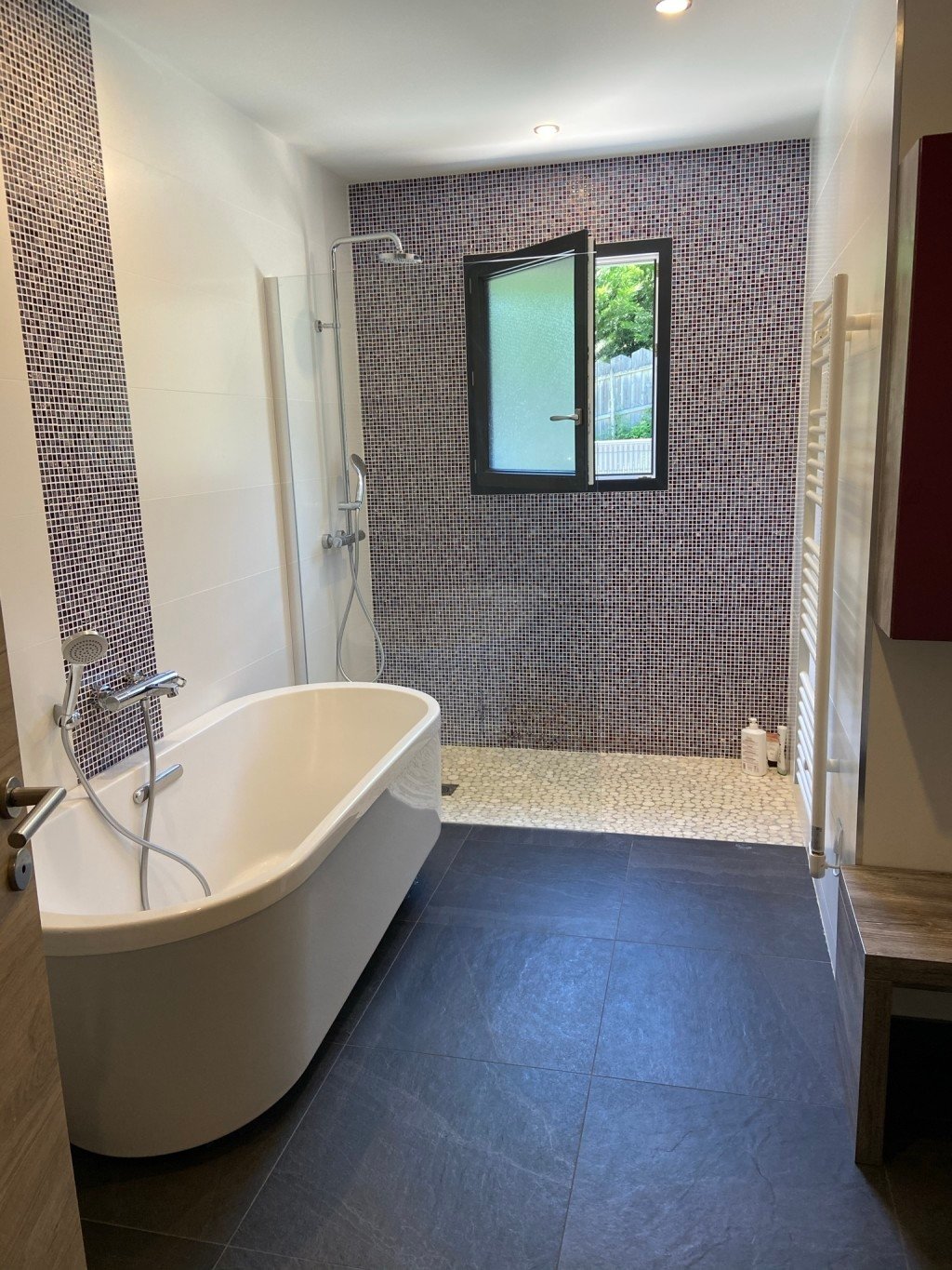 - Chambre 2 : dressing/ SDB 1 (douche italienne + baignoire + WC)