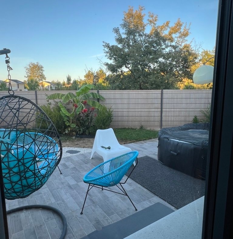 - terrasse de 130 m2 avec piscine de 8X3,5, jacuzzi spa et terrain de pétanque