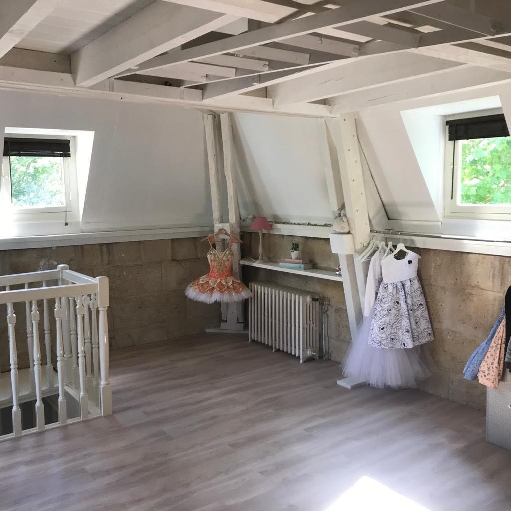 Combles : salle de jeux/ chambre avec poutres apparentes