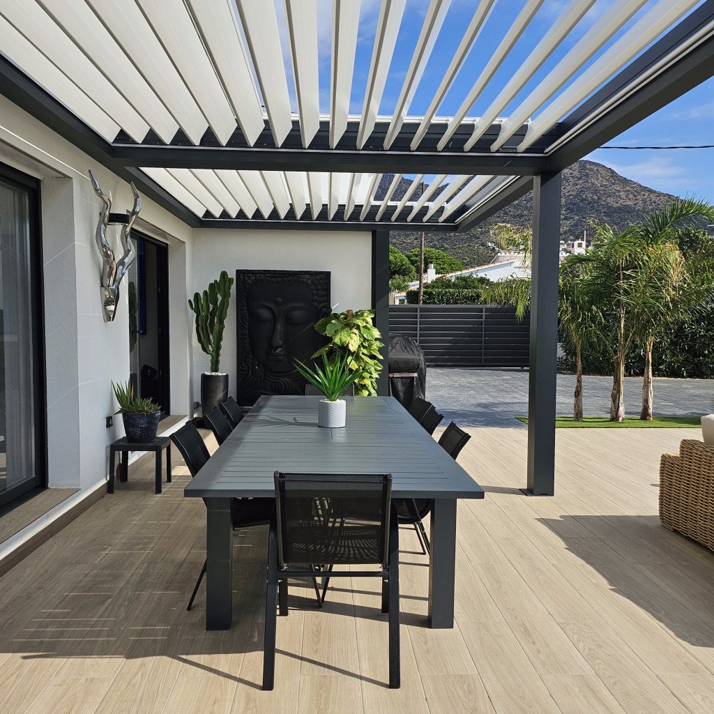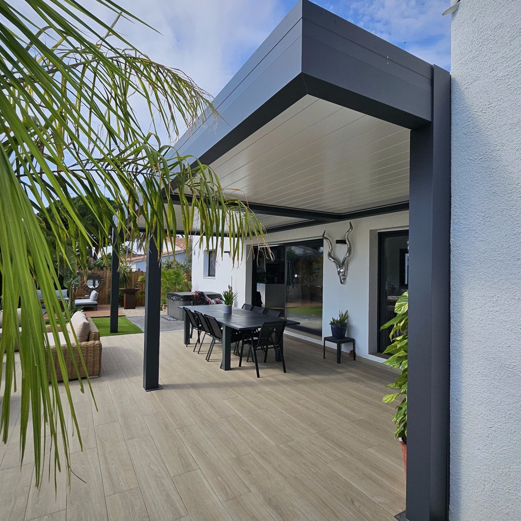 La villa est entièrement clôturée par un bardage en acier galvanisé, garantissant l'intimité et la sécurité des équipements.