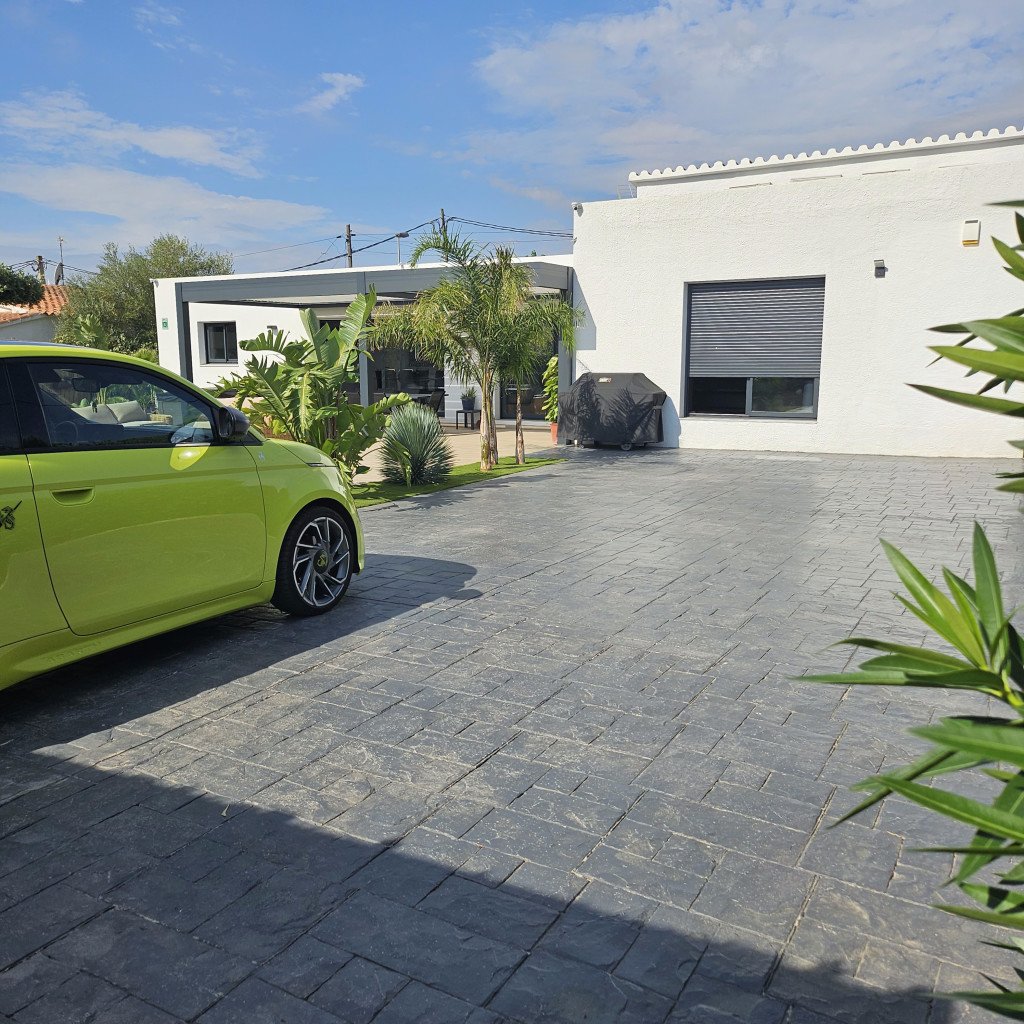Accès facile et sécurisé avec deux portails coulissants (6 m et 4 m) et un grand parking pouvant accueillir 5 à 6 véhicules (camions de production inclus).